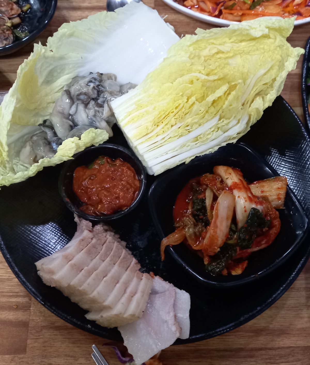 싱싱한 굴에 잘 삶아진 보쌈의 비주얼입니다.