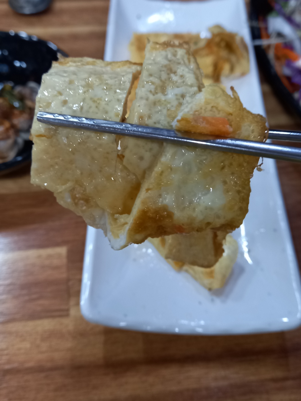 잡채 굴깍두기 오징어무침 오만둥이가 나왔습니다.