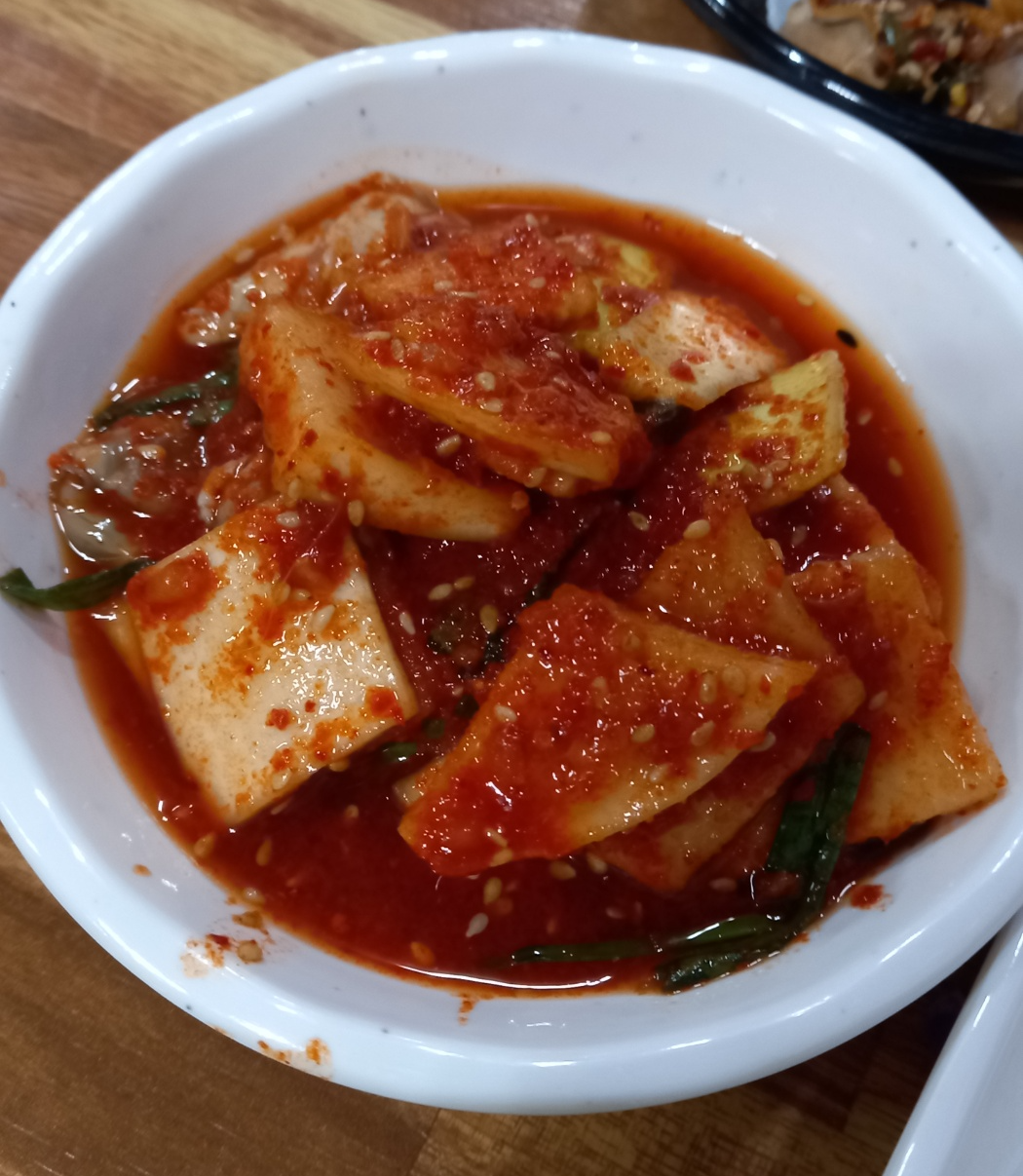 어묵무침과 깍두기가 맛있어서 충무김밥의 맛이 좋습니다.