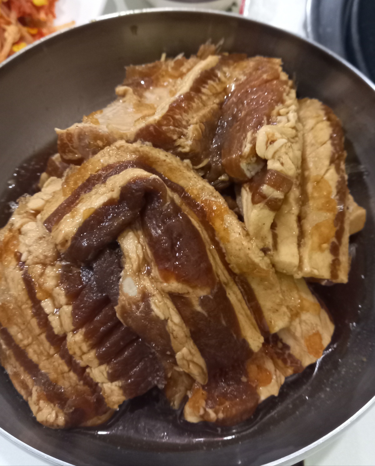 양념돼지갈비를 구워 먹기 전에 편육으로 입가심 하기 좋더라고요.