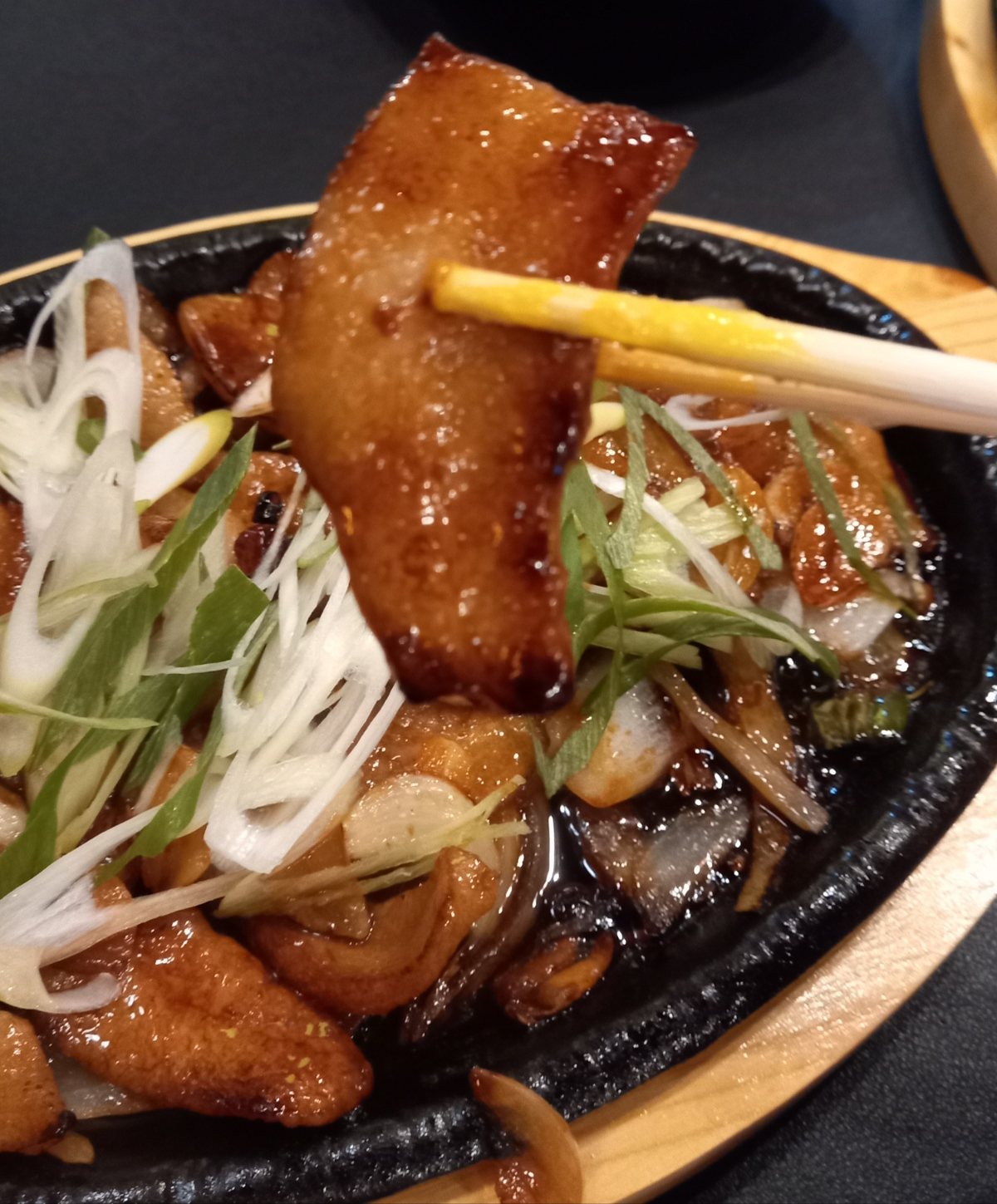 맛있게 구워진 항정살이 잡내없이 짭쪼름한 간장 베이스 양념소스가 맛있습니다.