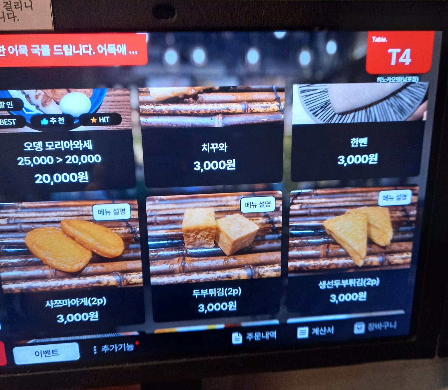 외관과 내부가 깔끔하고 가볍게 먹을 수 있는 오뎅과 꼬지를 메인 메뉴로 판매합니다.