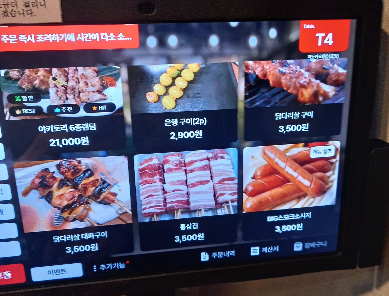 일차를 먹고 와서 가볍게 한잔하려고 꼬지를 낱개로 주문하였습니다.