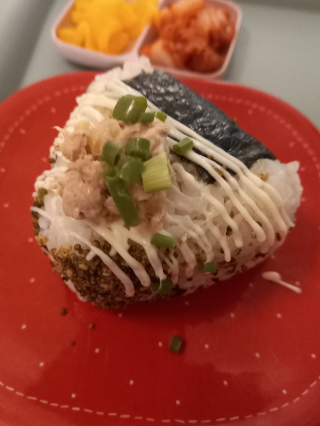 참치가 푸짐하게 들어간 참치마요주먹밥입니다.