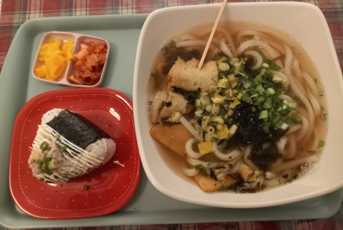 주문한 세트메뉴 우동과 오니기리 주먹밥이 나왔습니다.