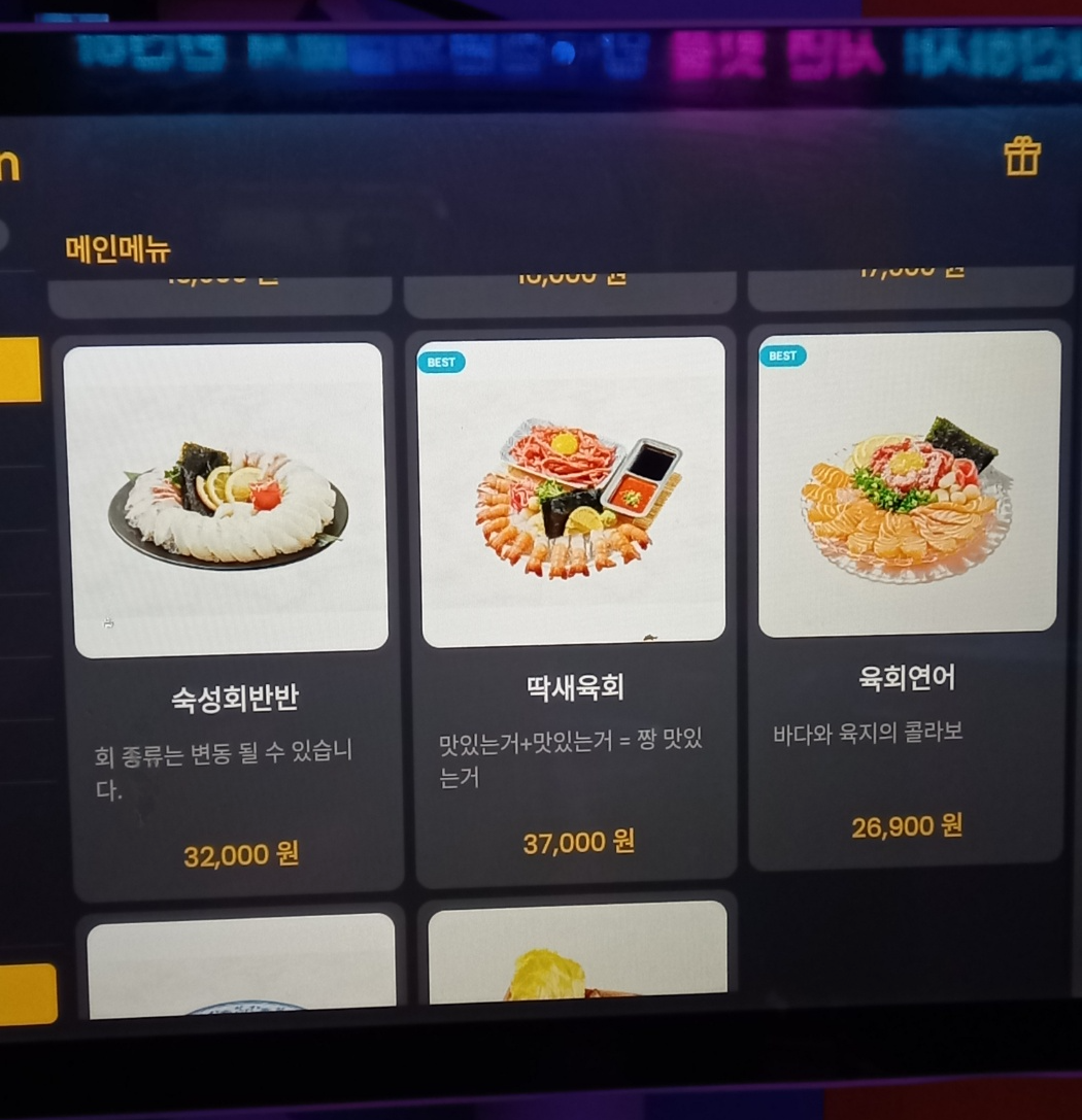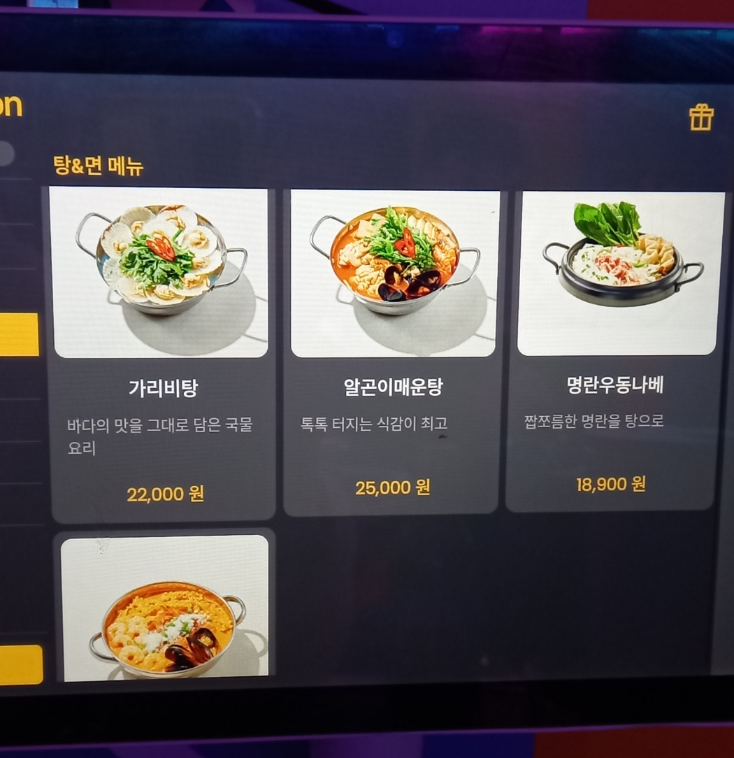 직원분께 메뉴판이 있냐 물어보니 없다하셔서 테이블키오더에 있는 메뉴들을 다 찍었네요.