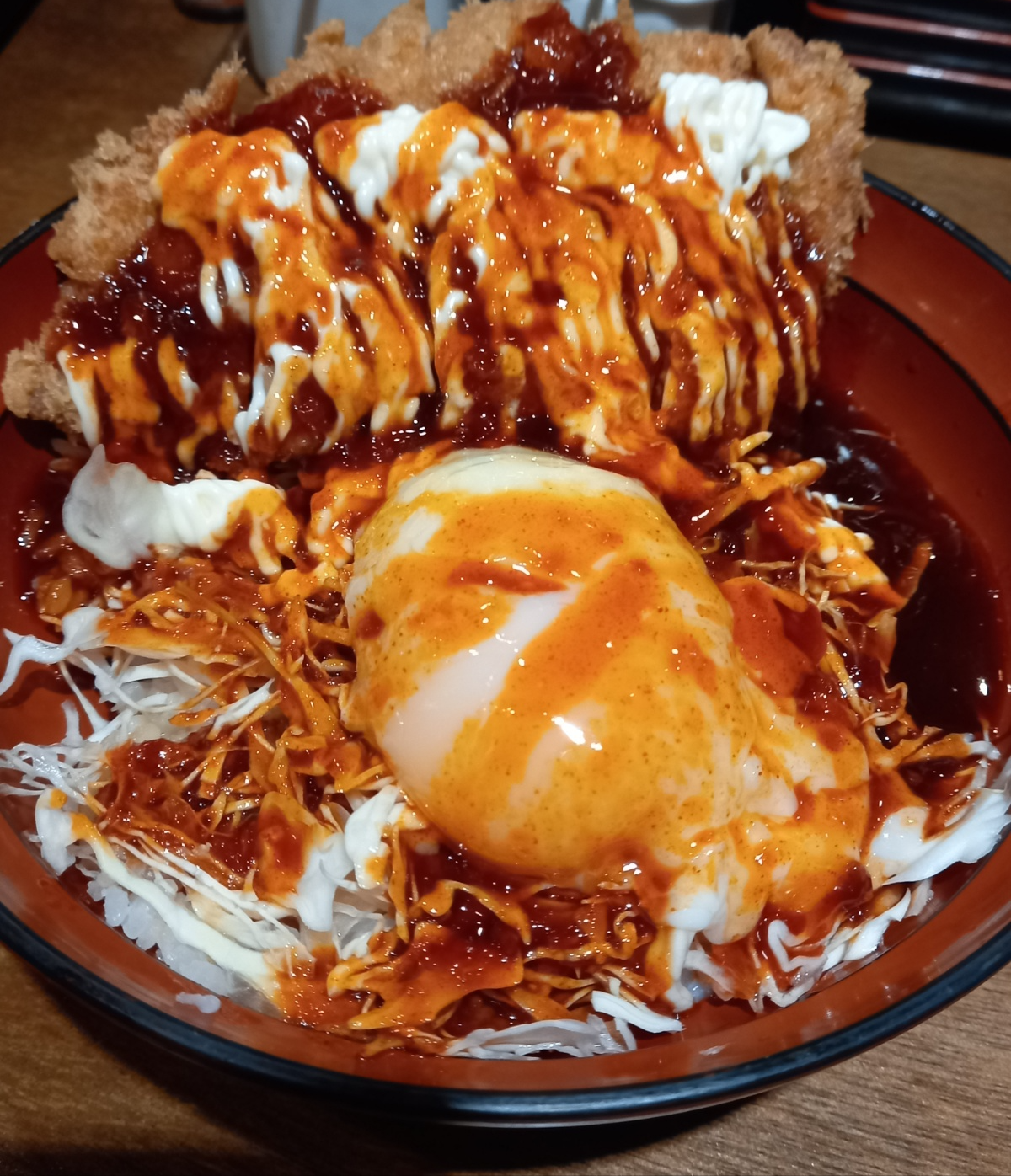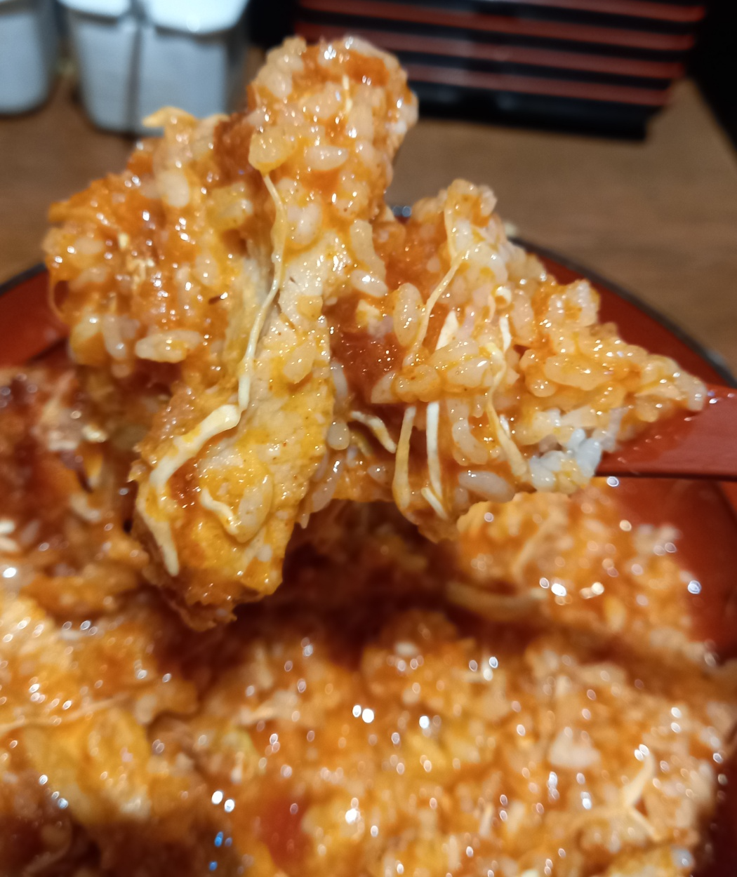 주문한 매운소스카츠동이 나왔습니다.