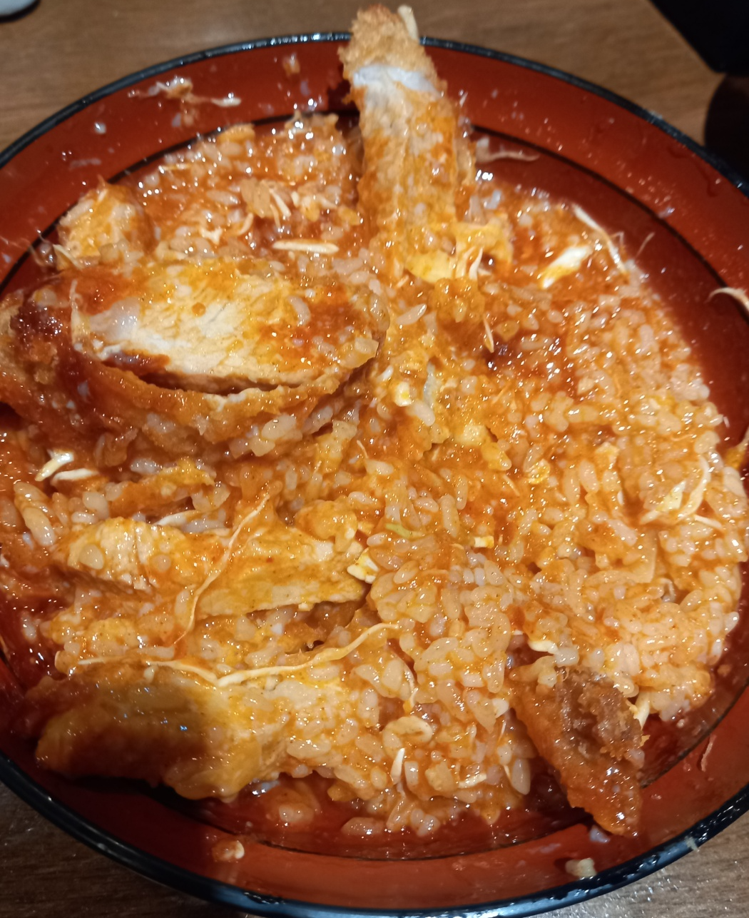 비벼진 매운소스카츠동을 먹어봅니다.