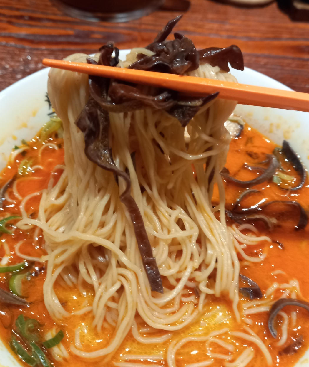 매운돈코츠라멘2단계로 주문했어요.
