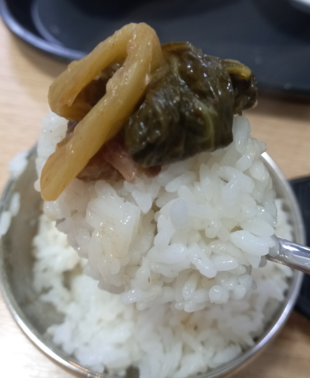 밥에 고기와 시래기를 올려 먹으니 꿀맛입니다.