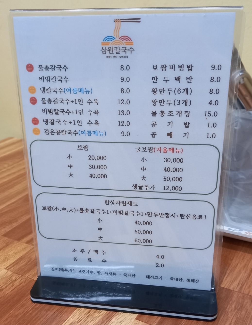 칼국수와 보쌈을 먹을 수 있는 메뉴가 있더라고요.