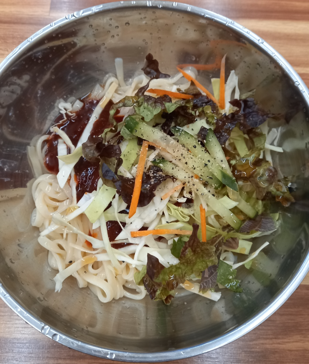 비빔칼국수에 채소가 더 많이 나오면 좋겠네요.