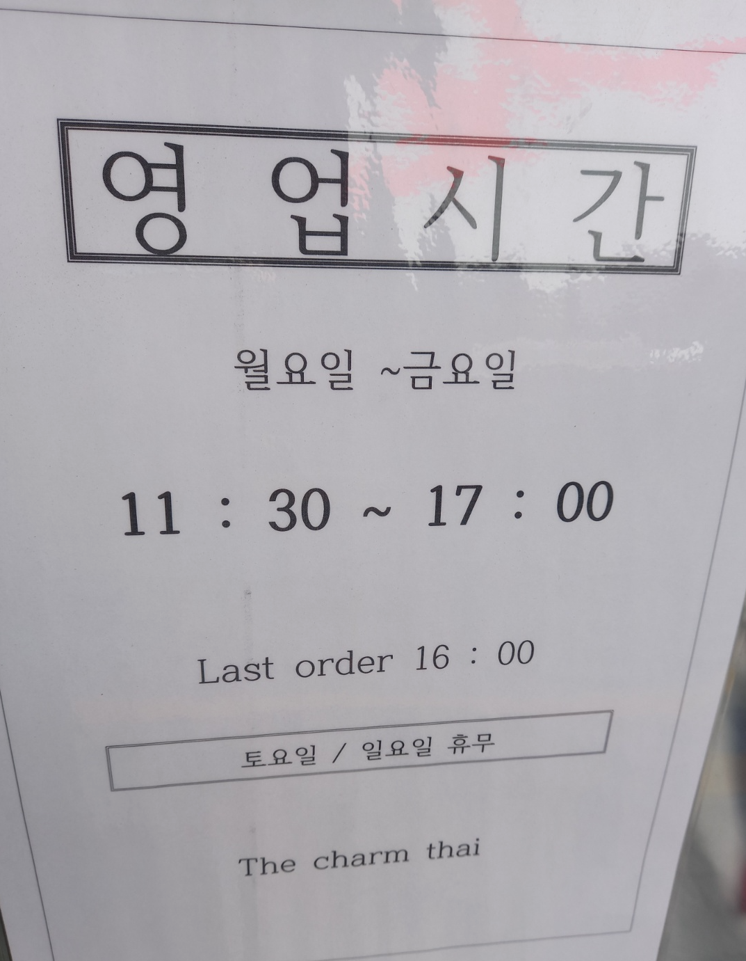 영업시간 : 월요일 ~ 금요일 11:30 - 17:00, 토요일 일요일휴무.