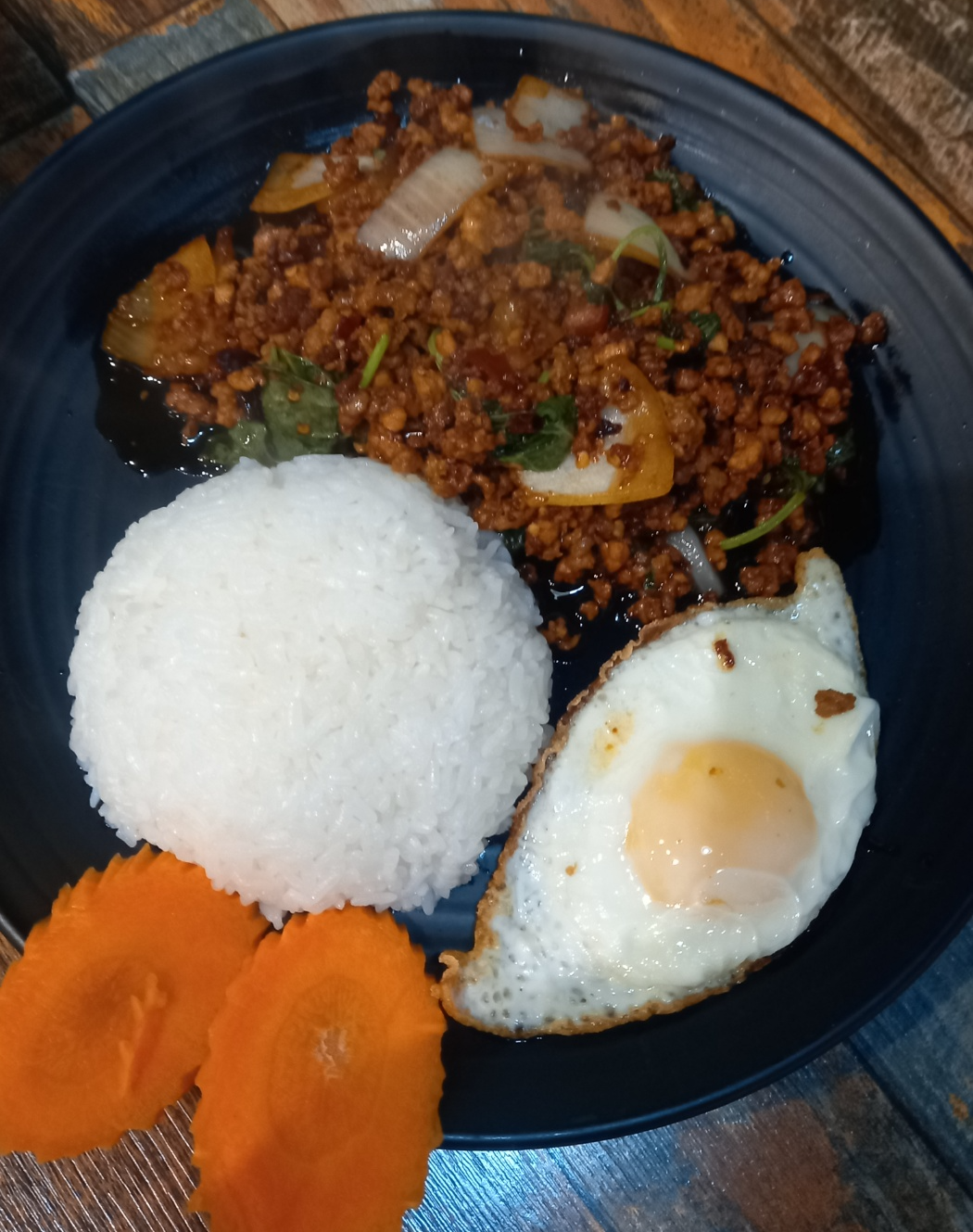 태국쌀국수를 먹을까하다가 밥이 낫겠다싶어 파카파오무쌉을 주문하였습니다.