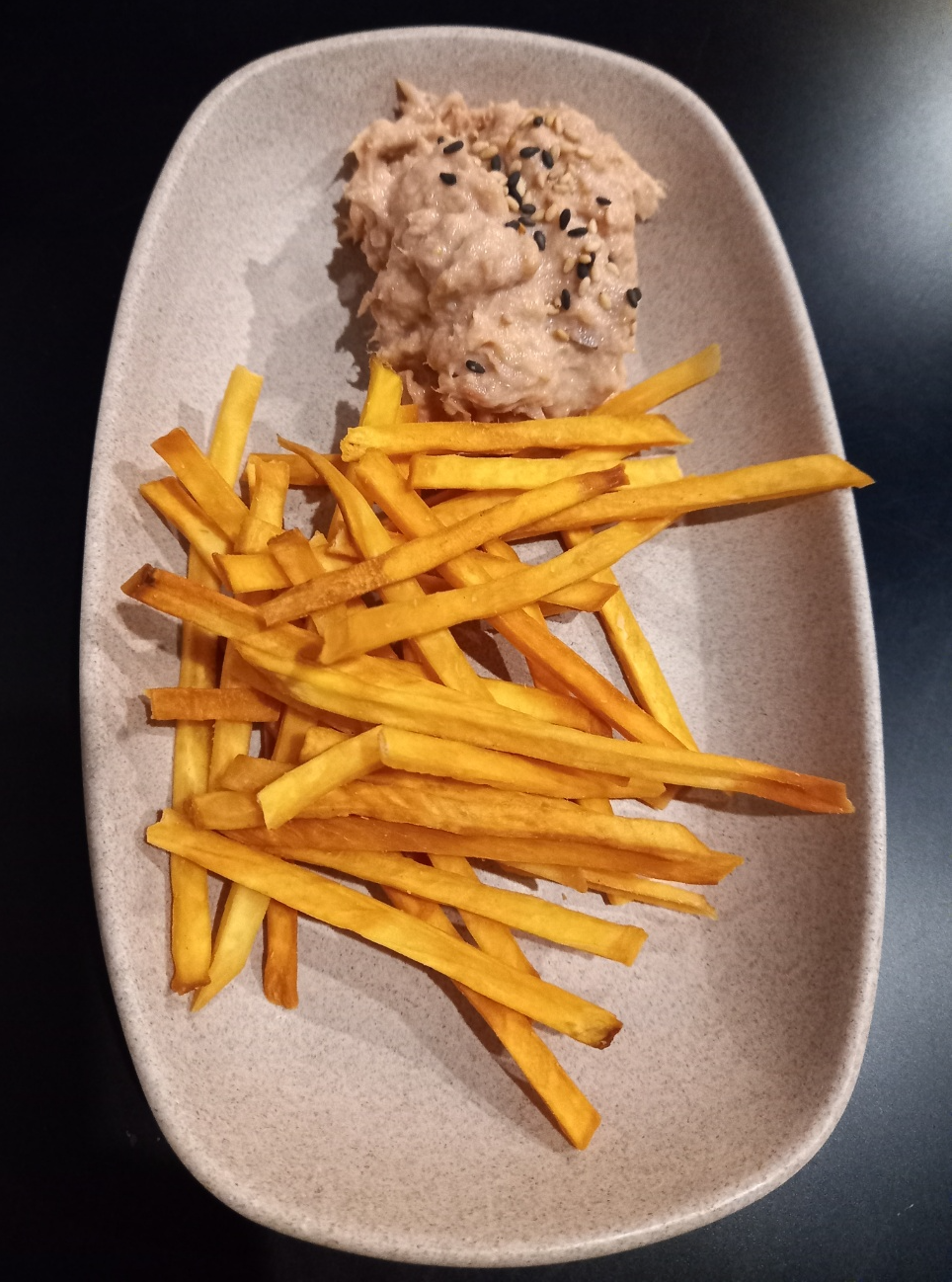 밑반찬으로 고구마스틱과 참치샐러드가 나옵니다.