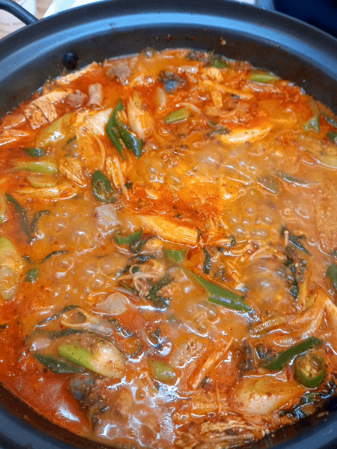 새우젓을 넣고 끓인 순대곱창전골을 먹어봅니다.