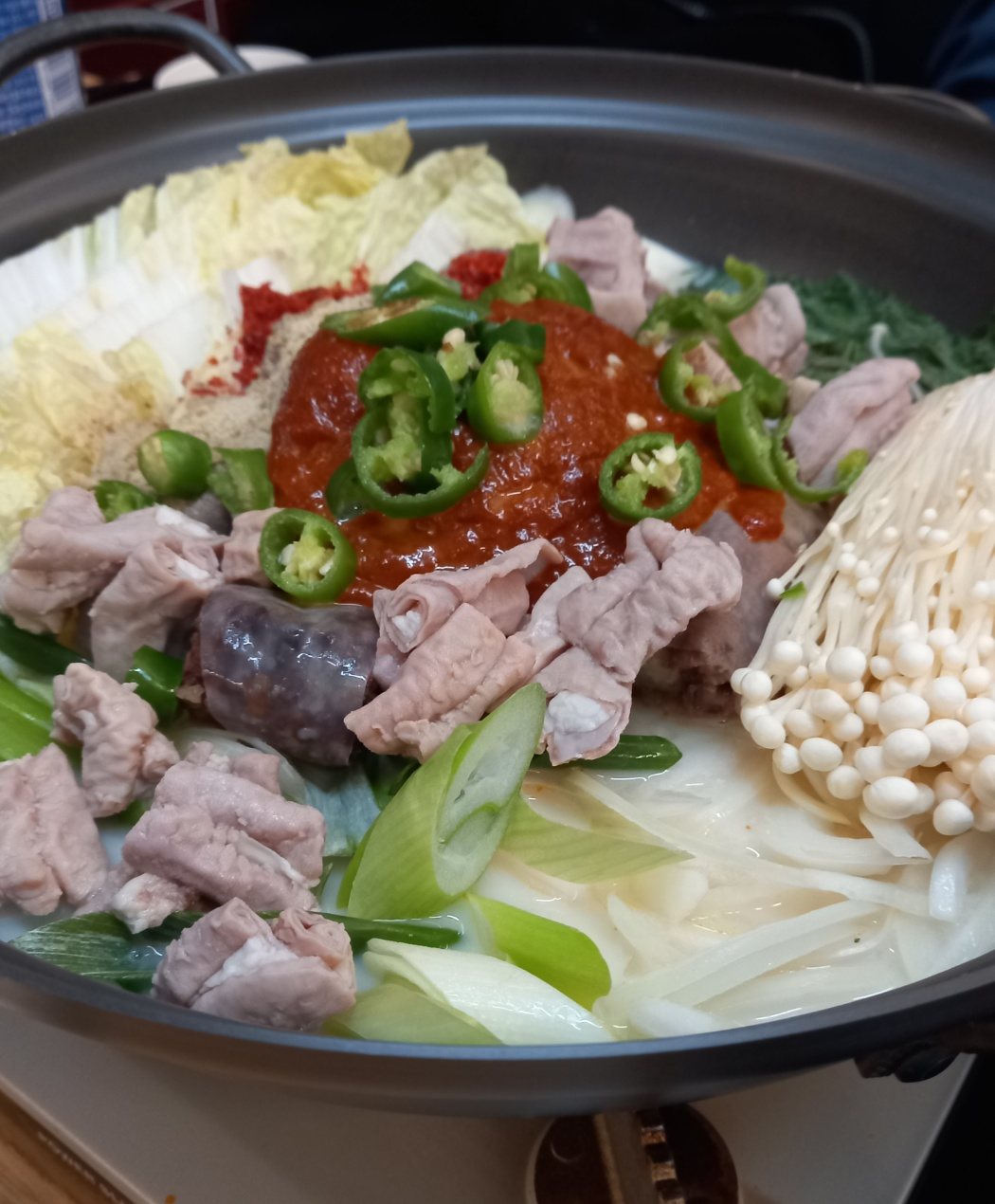 조금 기다리다보니 주문한 순대곱창전골이 나왔습니다.