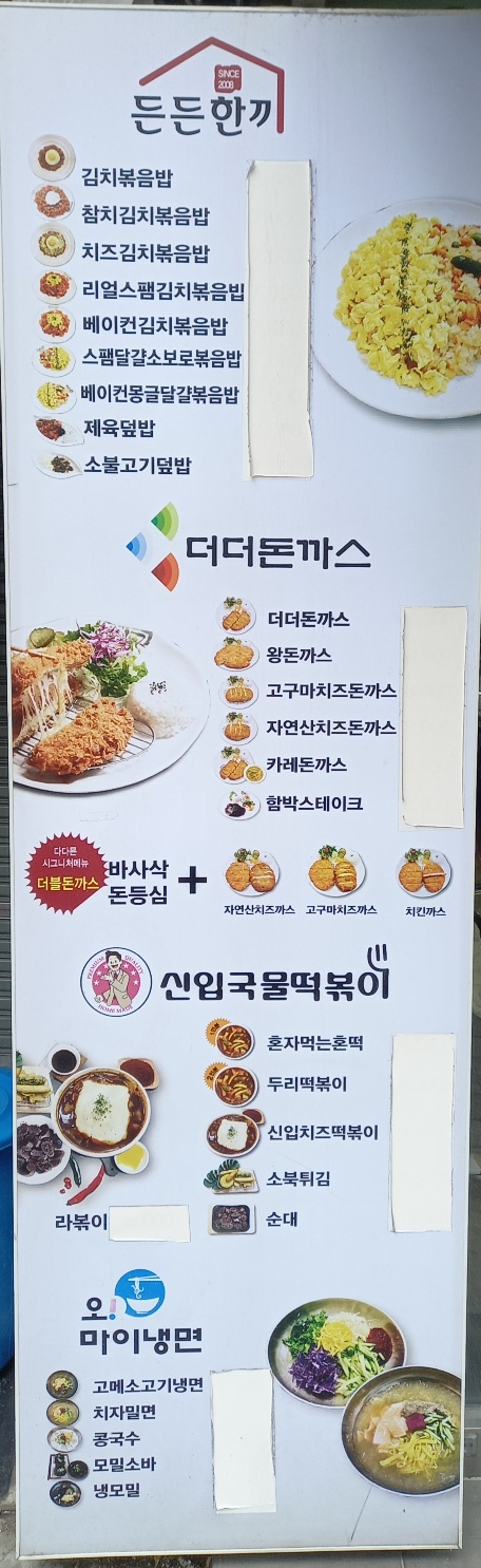 돈까스 김밥 떡볶이 오므라이스 볶음밥 다양한 메뉴를 판매하는 다다믄이 있더라고요.