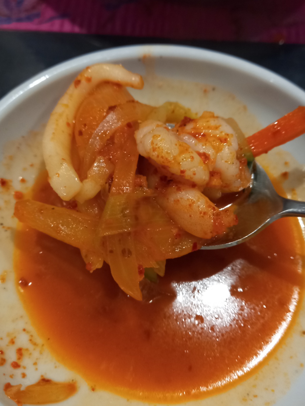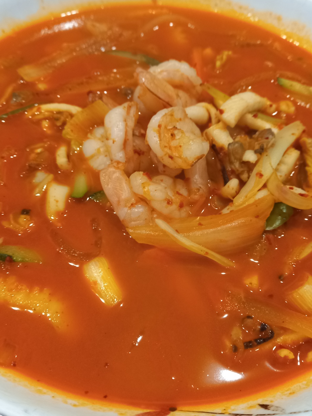 해산물과 야채가 들어가 국물맛이 시원하고 개운한맛이 좋아요.