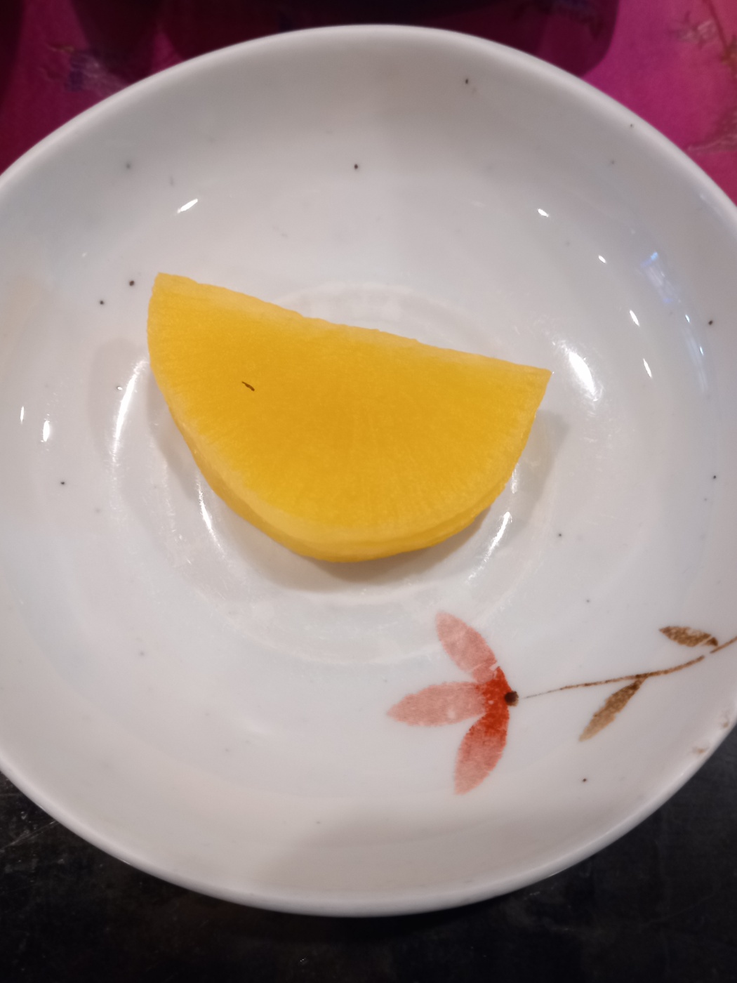 밑반찬으로 단무지와 춘권튀김이 나옵니다.