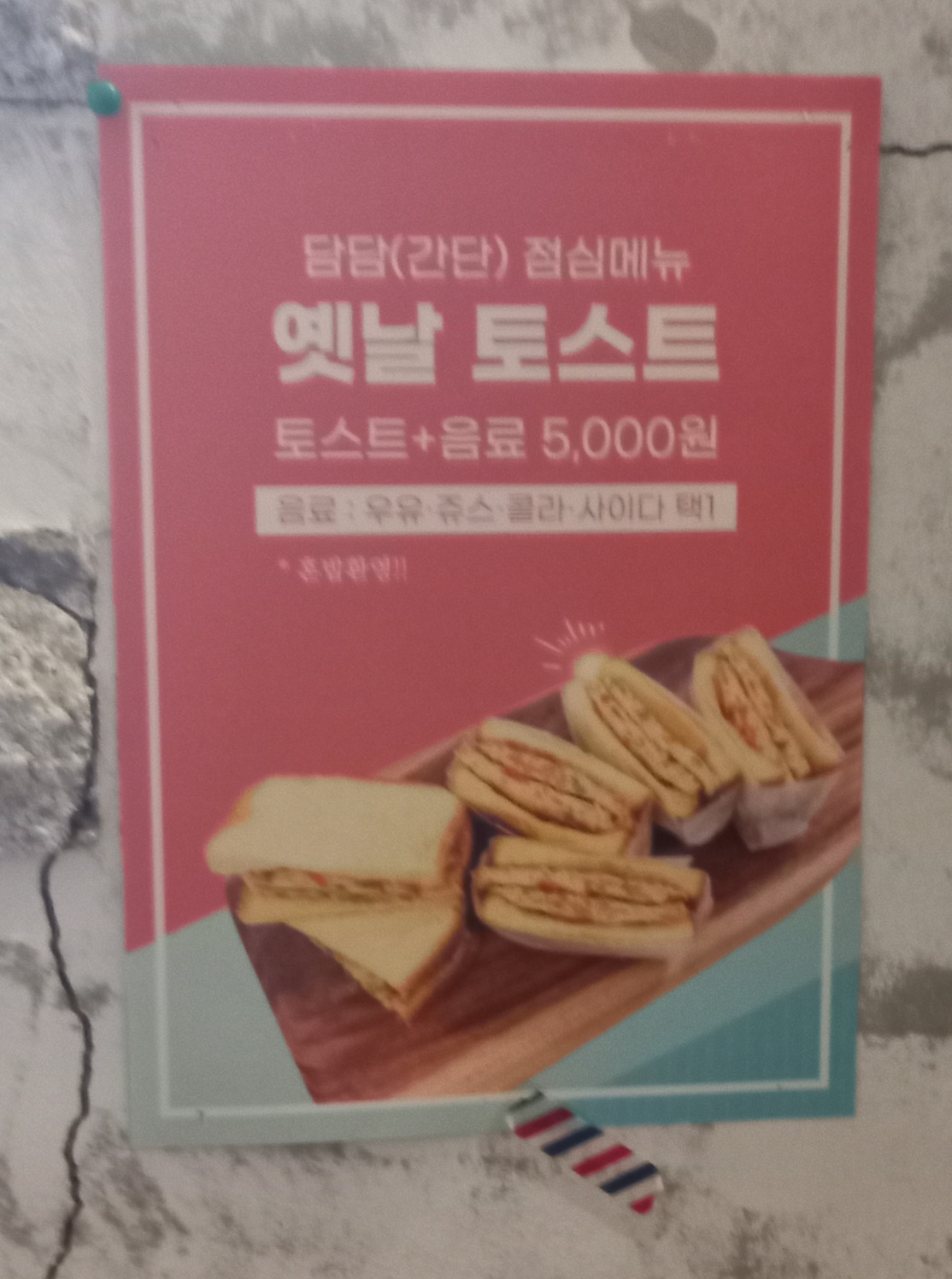 중앙동 담담 점심메뉴로 옛날토스트를 판매한다는 포스팅도 붙여져있던데
