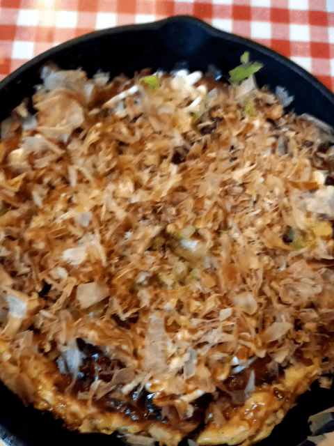 그래서 주문한 해물오코노미야끼를 먹어봅니다.