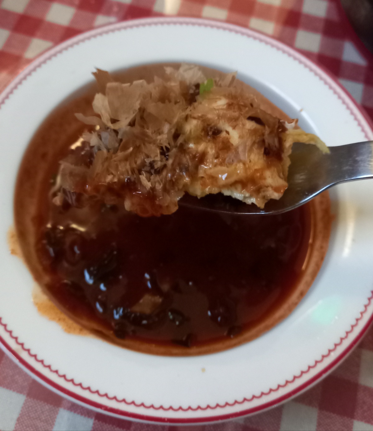 여기는 오코노미야끼 소스가 따로 나와서 찍어 먹어봅니다.