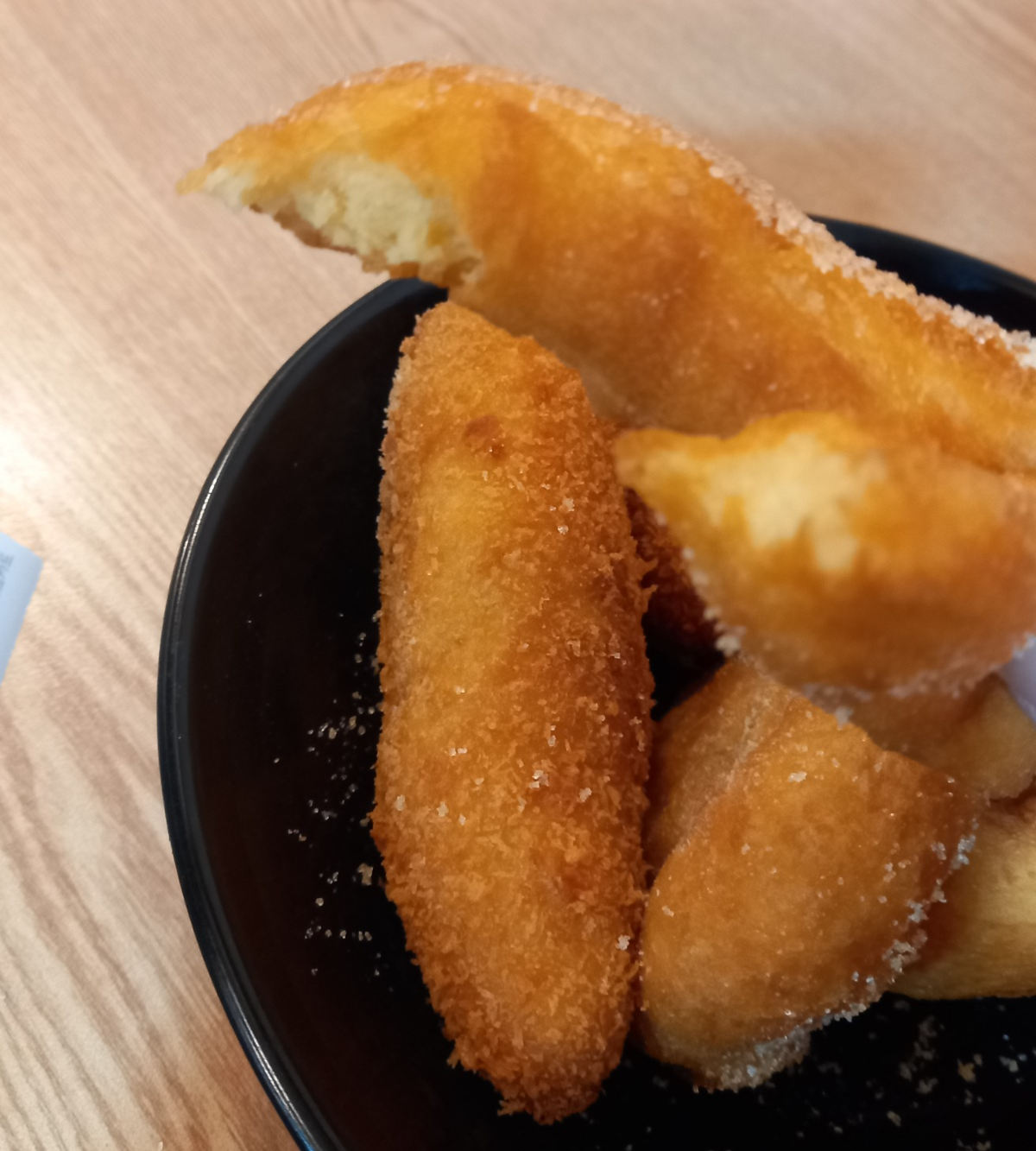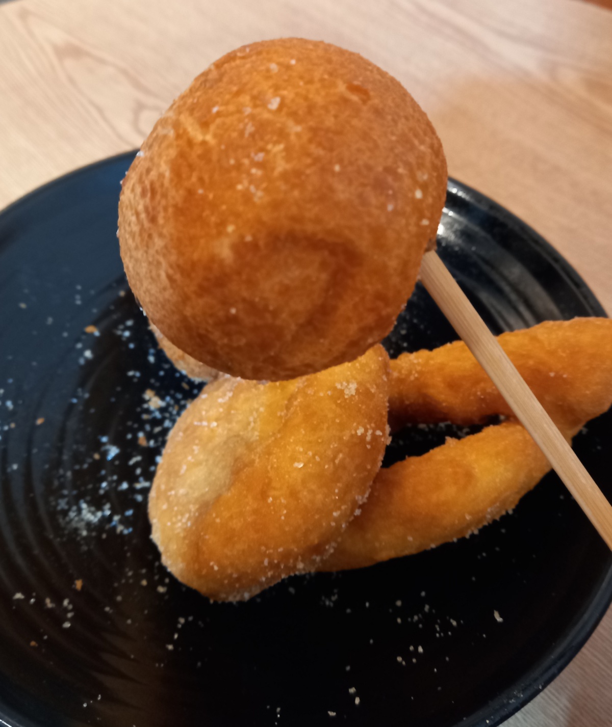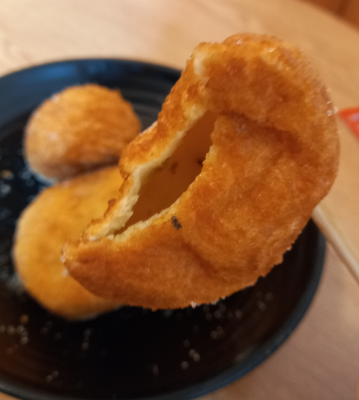 처음에 이게 뭐지 싶었는데 먹어보니 공갈빵 비슷한데 꽈배기와 비슷한 식감과