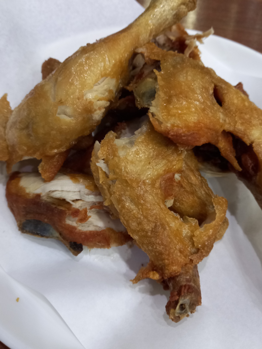 옛날통닭만의 얇은 튀김옷이 맛있습니다.