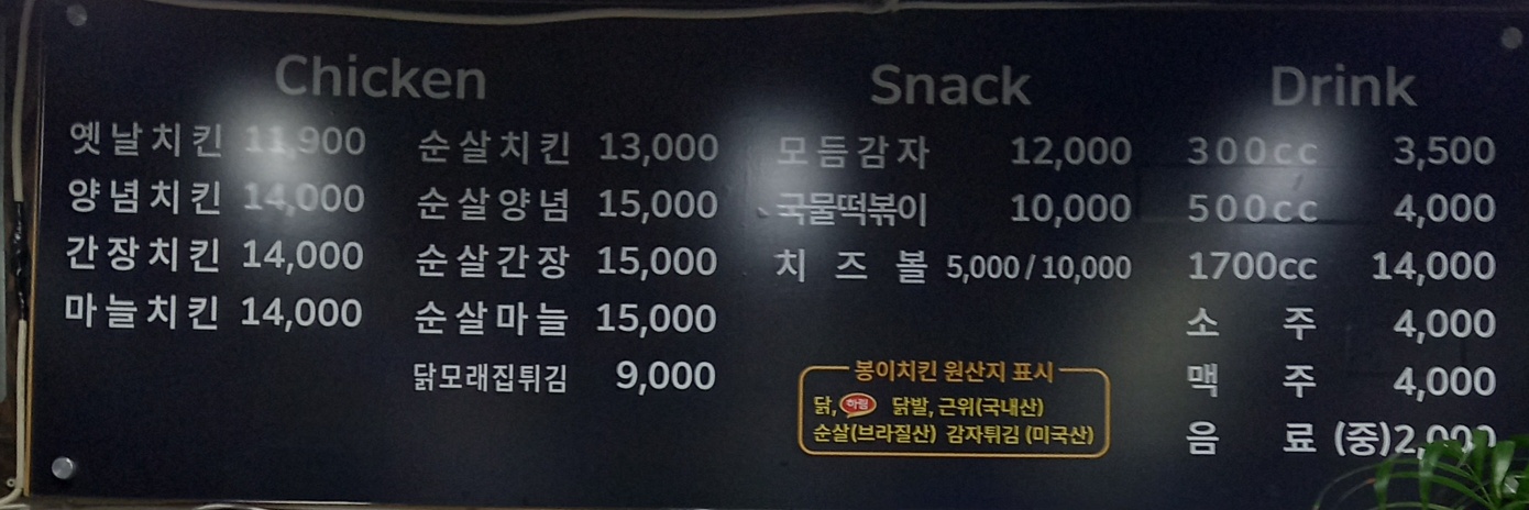 동네 주민분들이 꽤 많이 방문하는 봉이치킨.