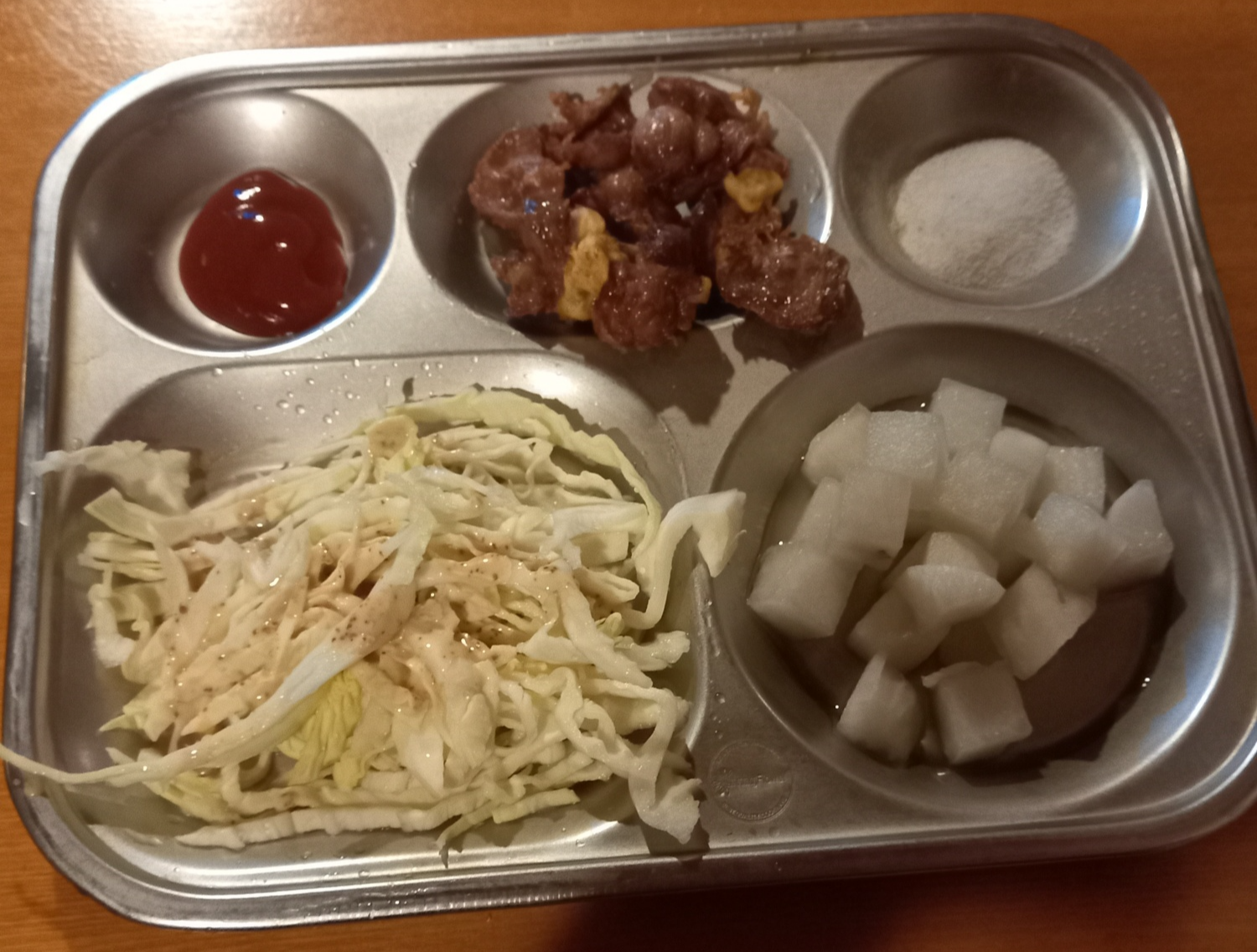 저는 치킨을 먹을때 치킨무보다 양배추샐러드를 좋아하는데