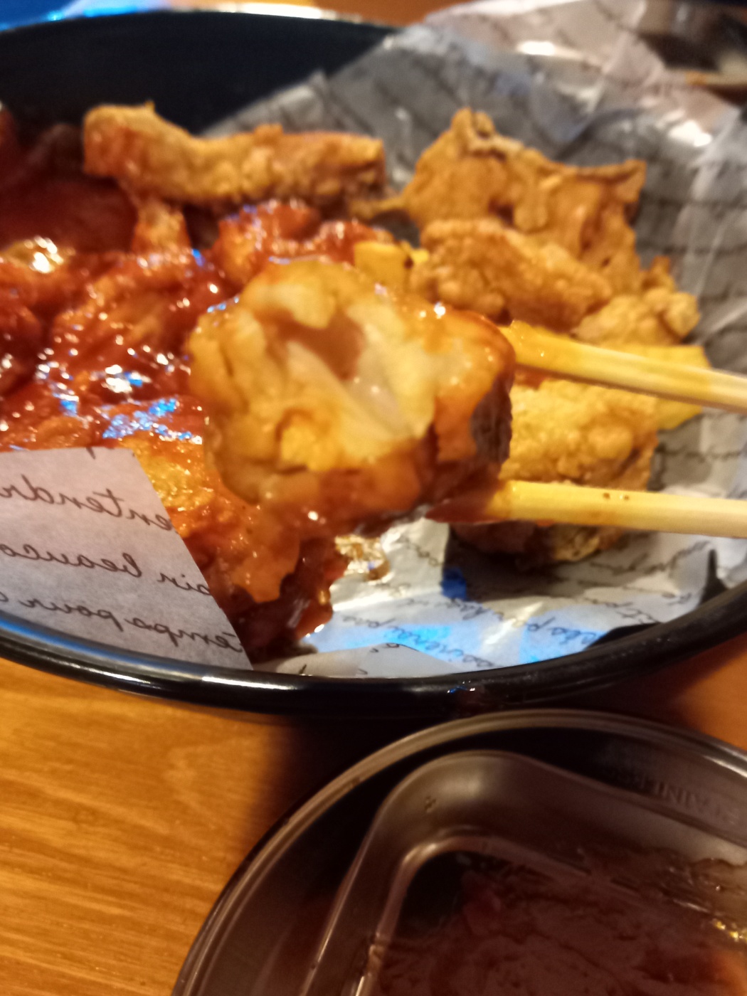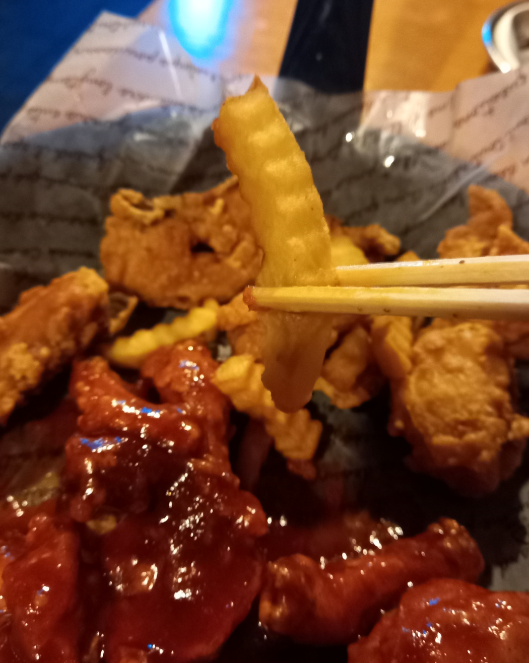 살짝 매콤한 양념소스라 저는 매콤한 맛을 좋아하다보니 잘 맞더라고요.