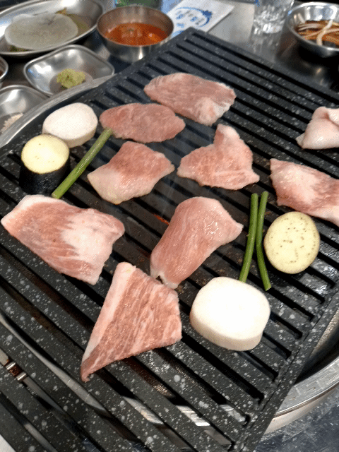 중간쪽은 불판에쎄서 외곽쪽에서 여유있게 구워주시면됩니다.