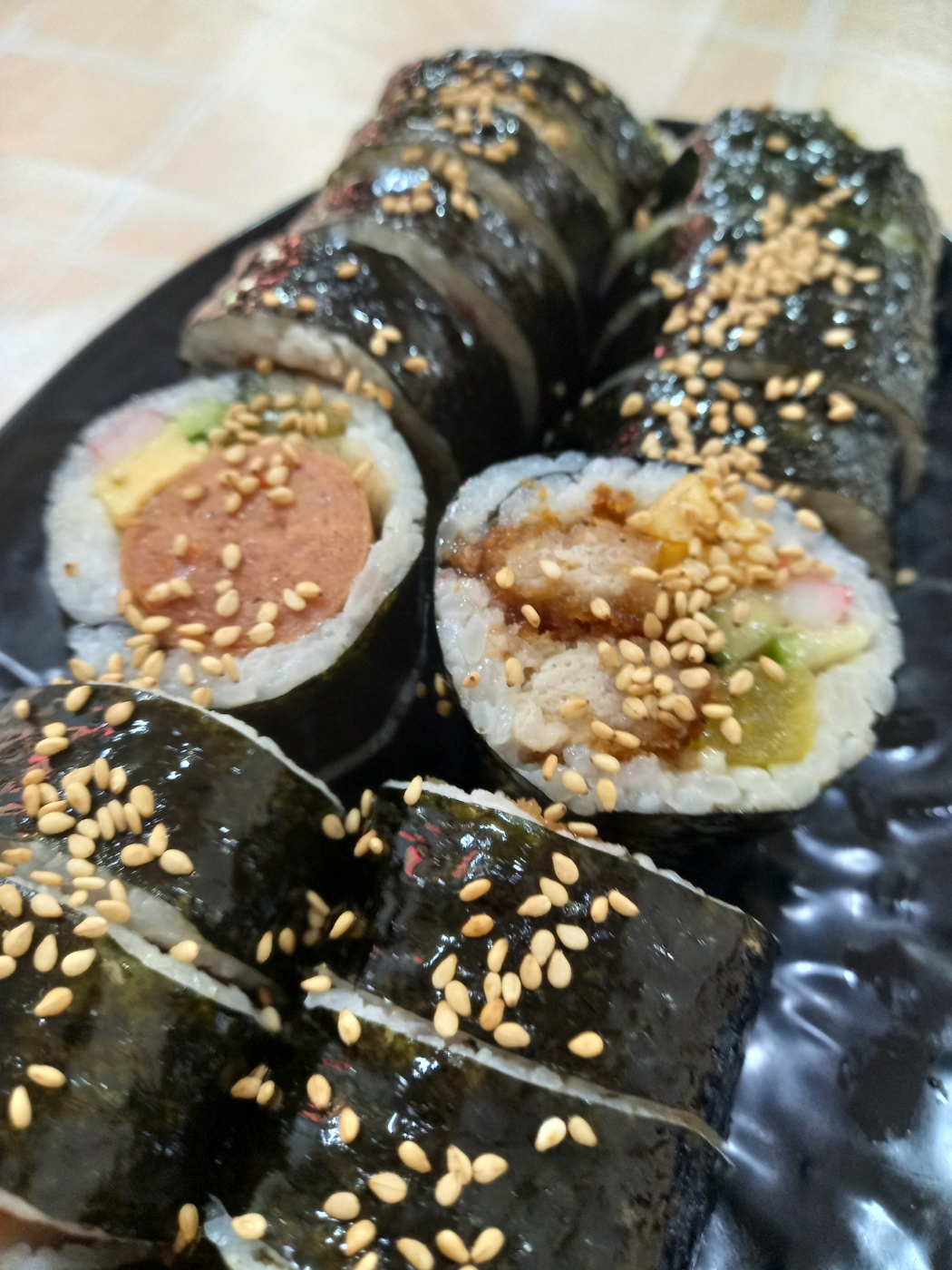맛있는 김밥에 돈까스의 바삭하고 돈까스의 소스까지 더해져 맛있습니다.