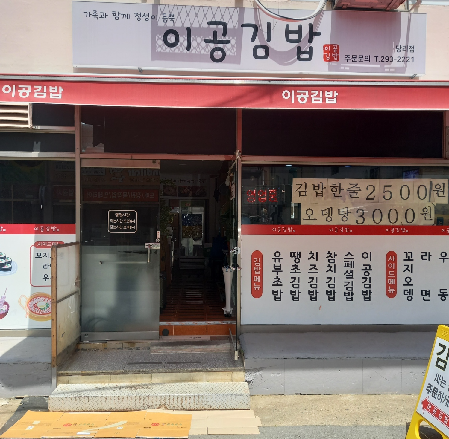 당리 이공김밥 메뉴입니다.