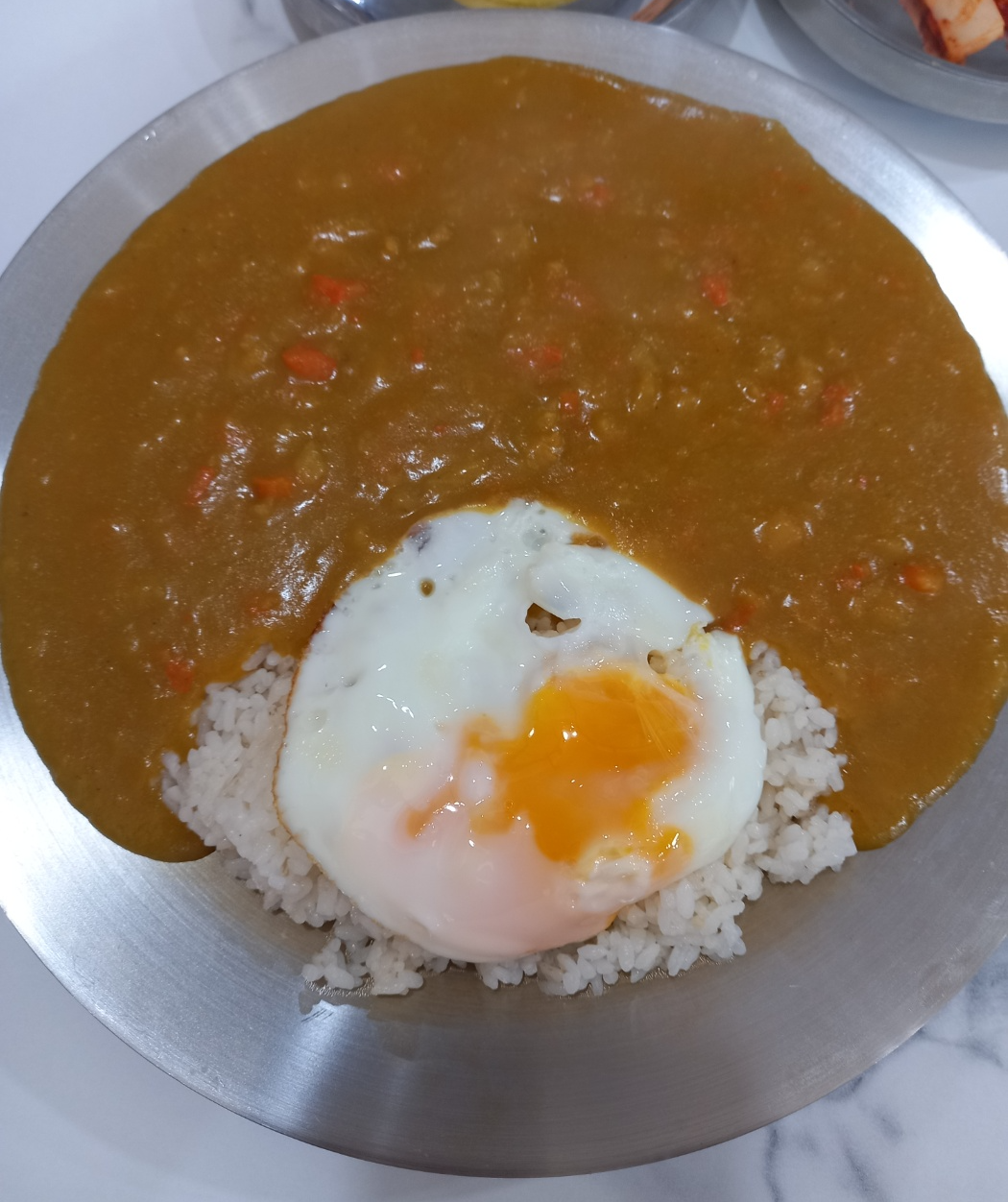 주문한 카레덮밥 곱빼기가 나왔습니다.