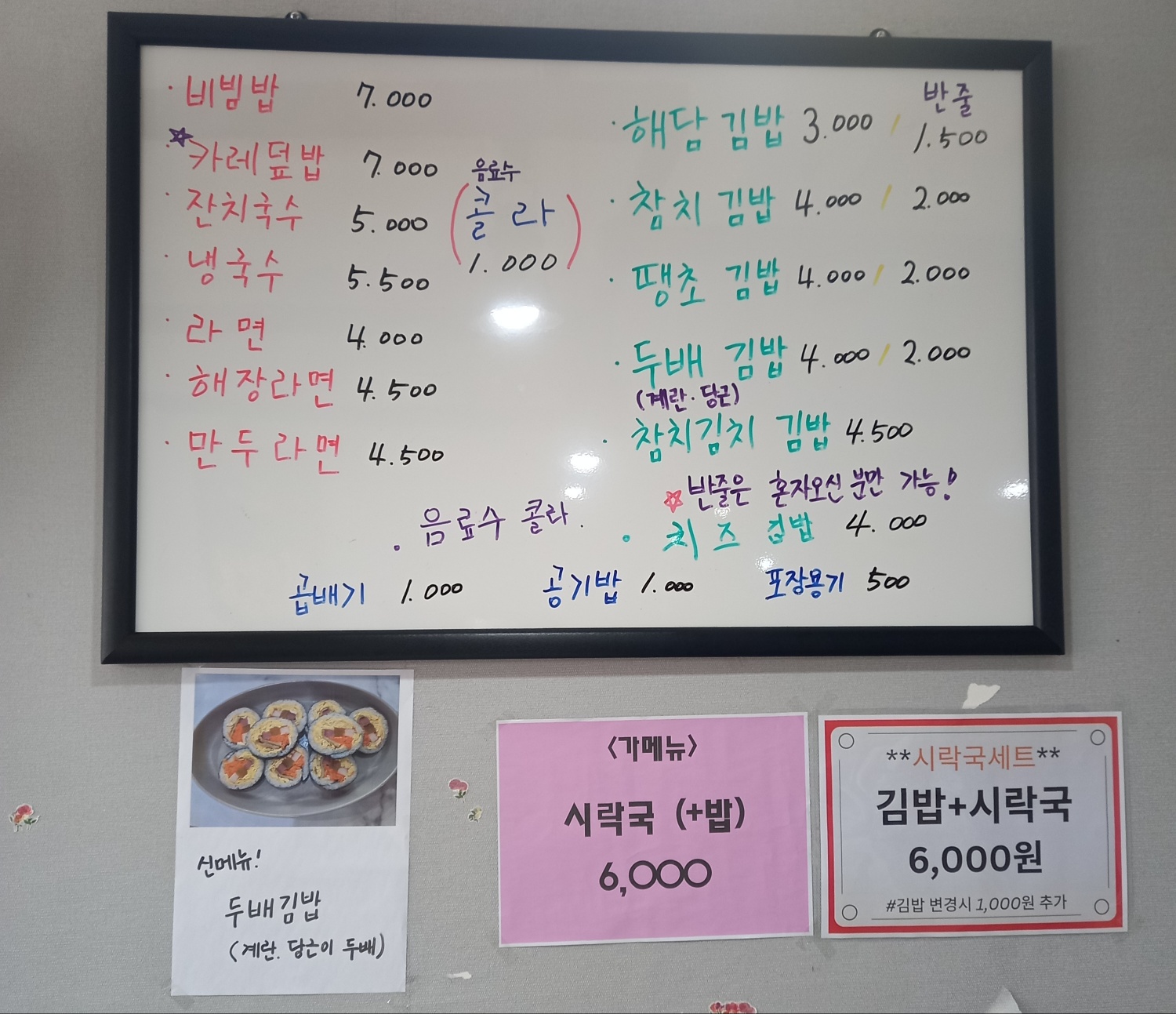 당리 해담김밥 메뉴판입니다.