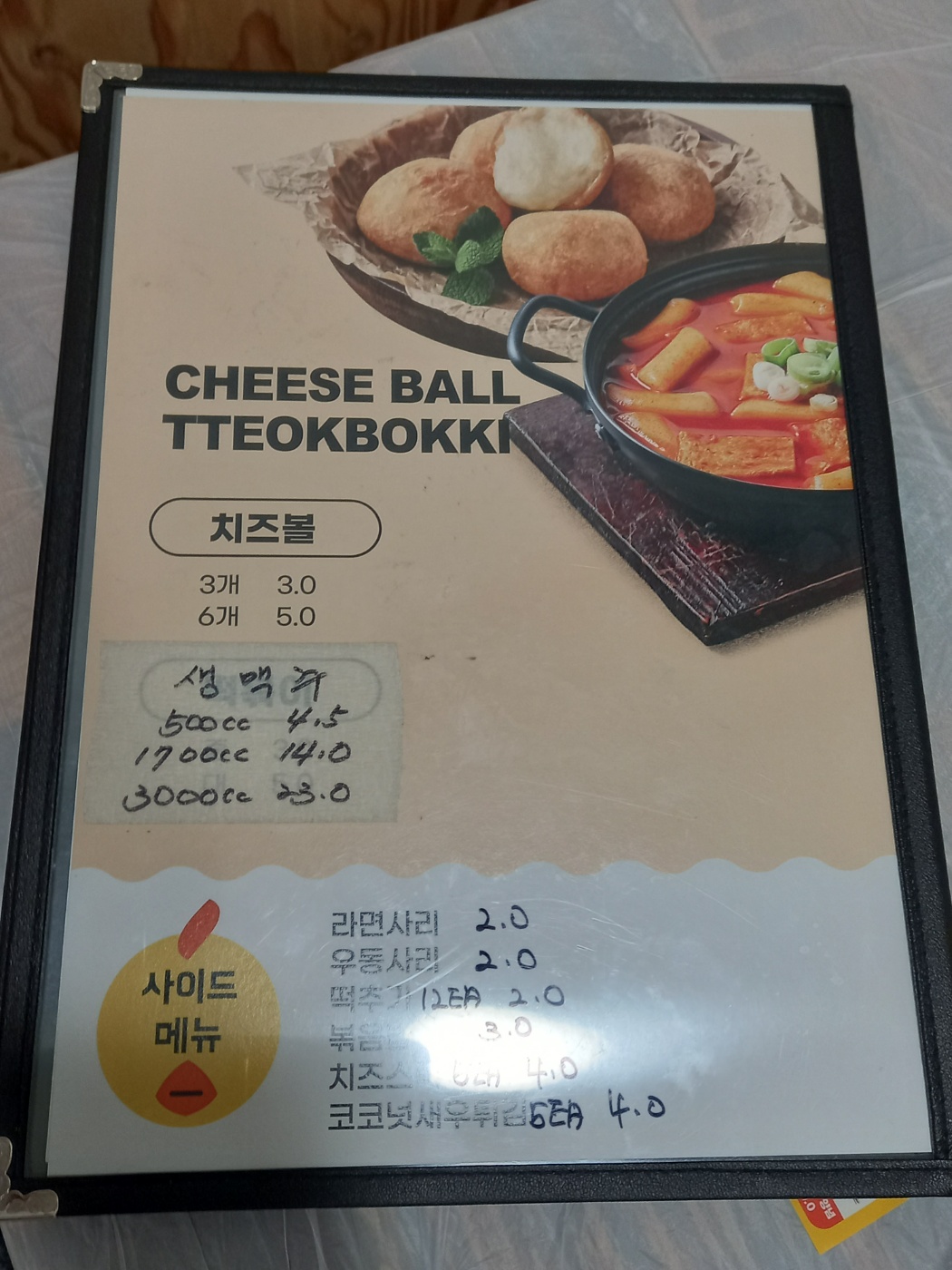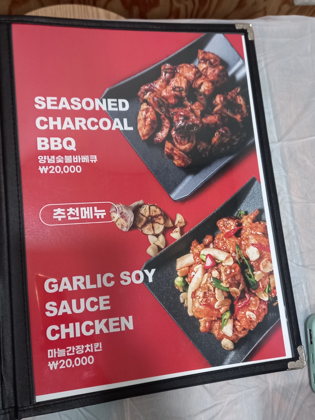 테이블에 앉으니 메뉴판이 있습니다.
