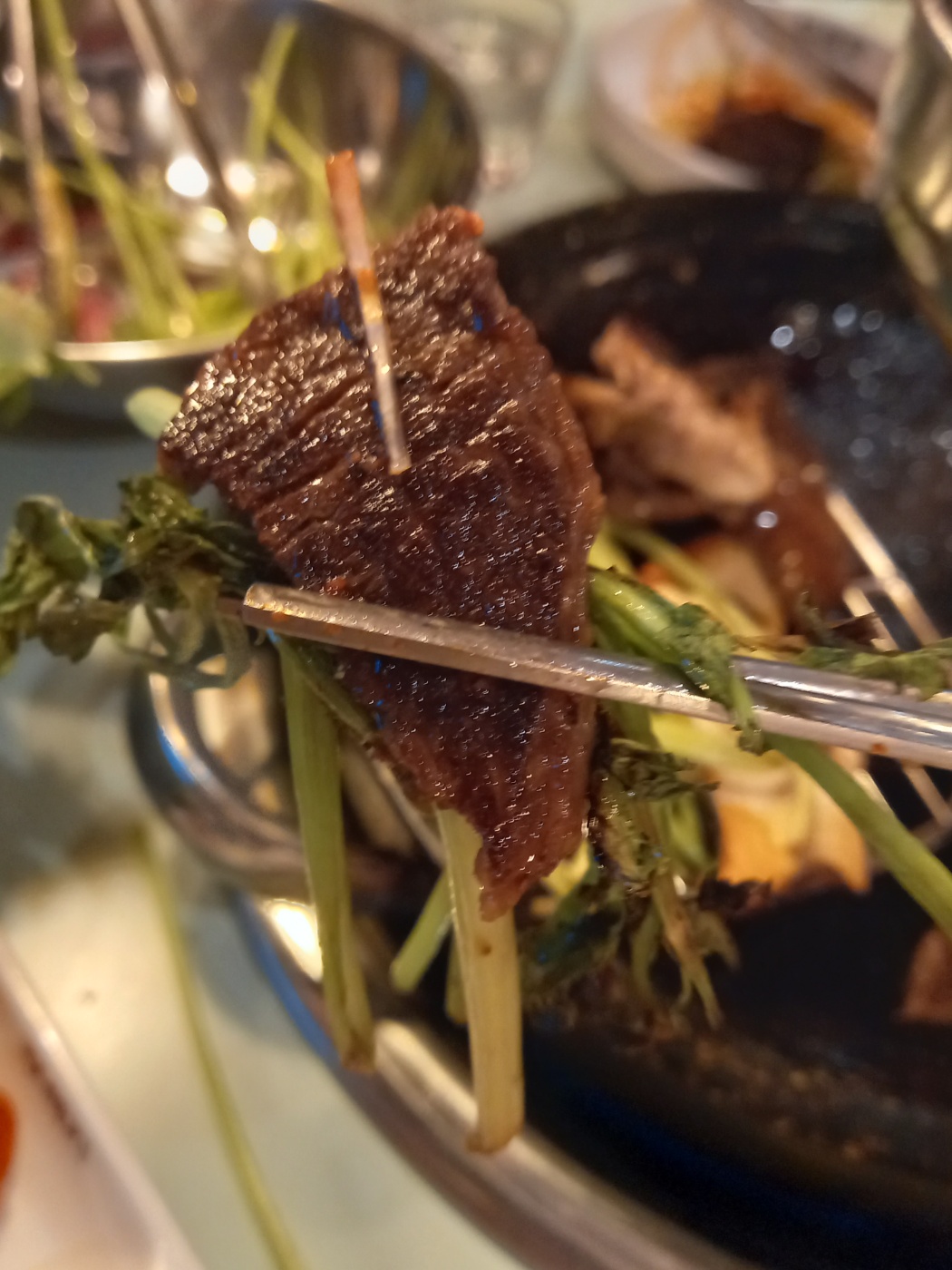 돌판에 구워먹어서 그런지 더 맛있는거 같긴한데 돌판이 데워지는 시간이 있어서