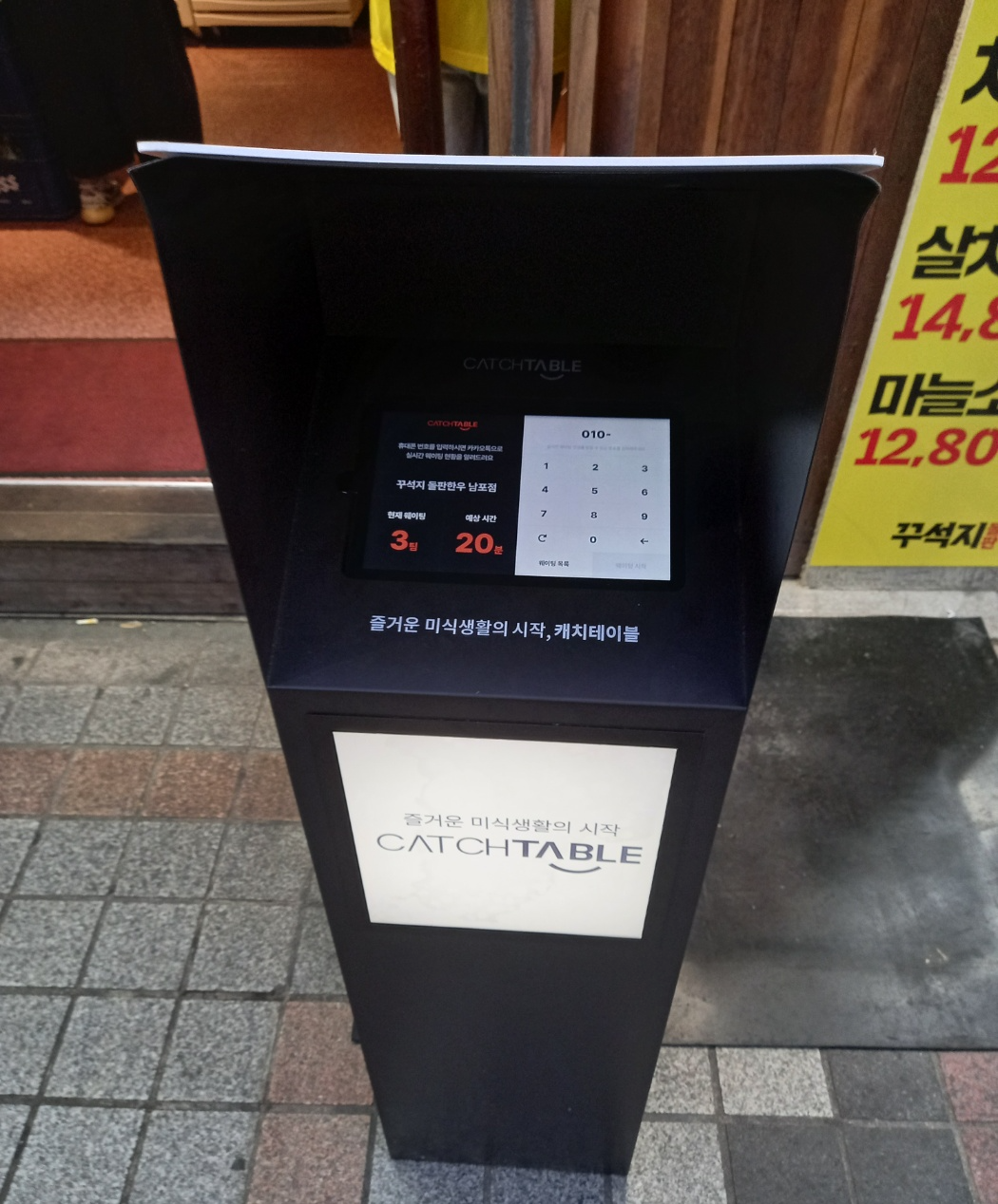 지인이 웨이팅해서 먹어보자고 밖에 있는 기기에 번호를 적고 산책하고 있으니 알림이 오더라고요.