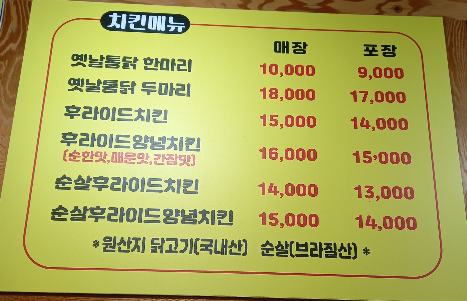 로컬 치킨집이라 그런지 가격들이 저렴합니다.