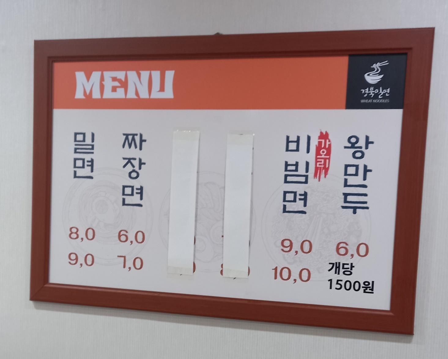 밀면 짜장면 비빔밀면 가오리비빔면 왕만두를 판매합니다.