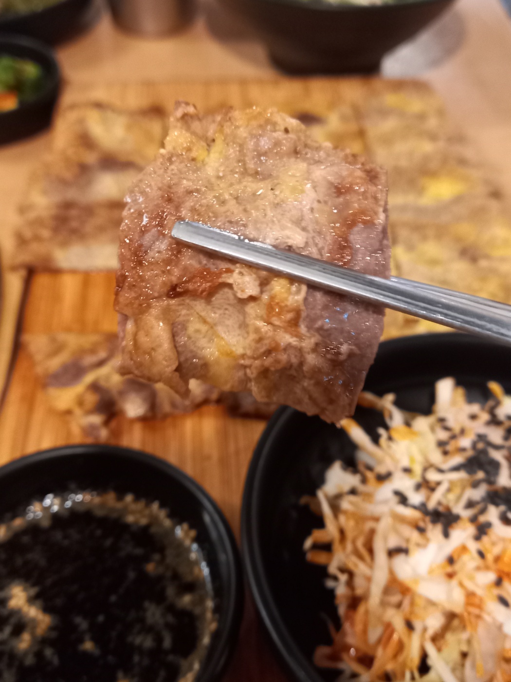 그냥 먹기에는 조금 삼삼한편이라 반찬과 먹거나 소스에 찍어드시면 더 맛있었습니다.