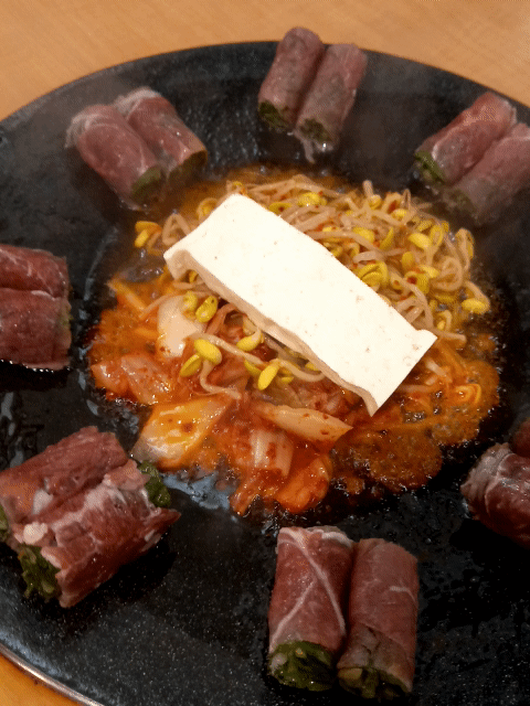 고기말이와 김치 콩나물이 자박자박하게 구워지는 소리가 맛있겠더라고요.