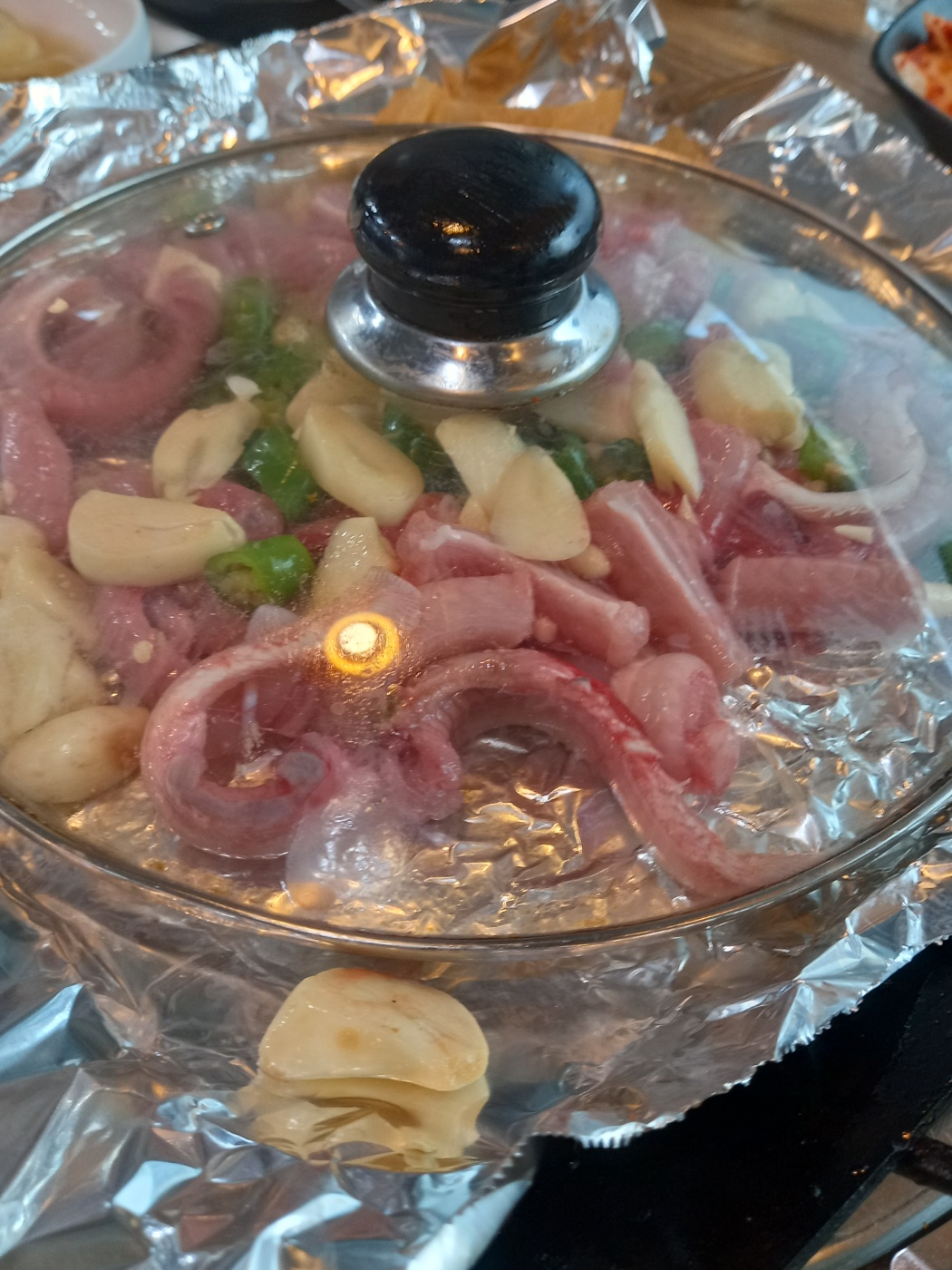 금방 구워먹을 수 있게 사장님께서 냄비 뚜껑으로 덮어주십니다.