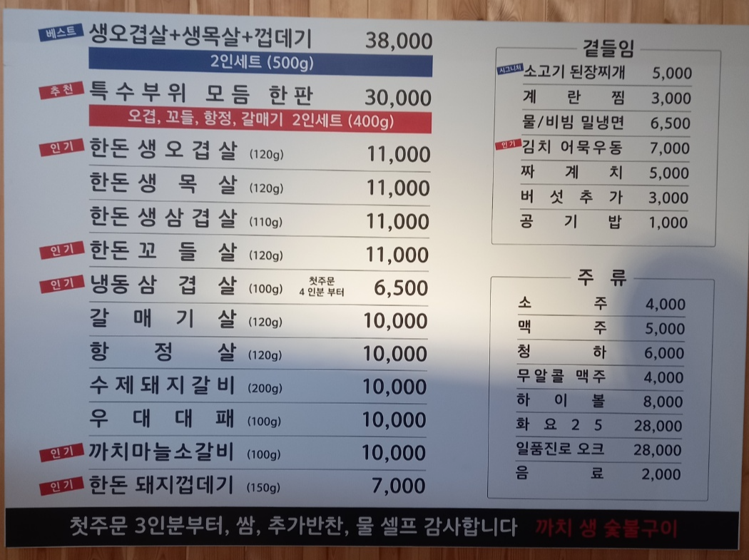 생오겹살 생목살 생삼겹살 특수부위 소갈비 돼지갈비 여러 메뉴를 판매합니다.
