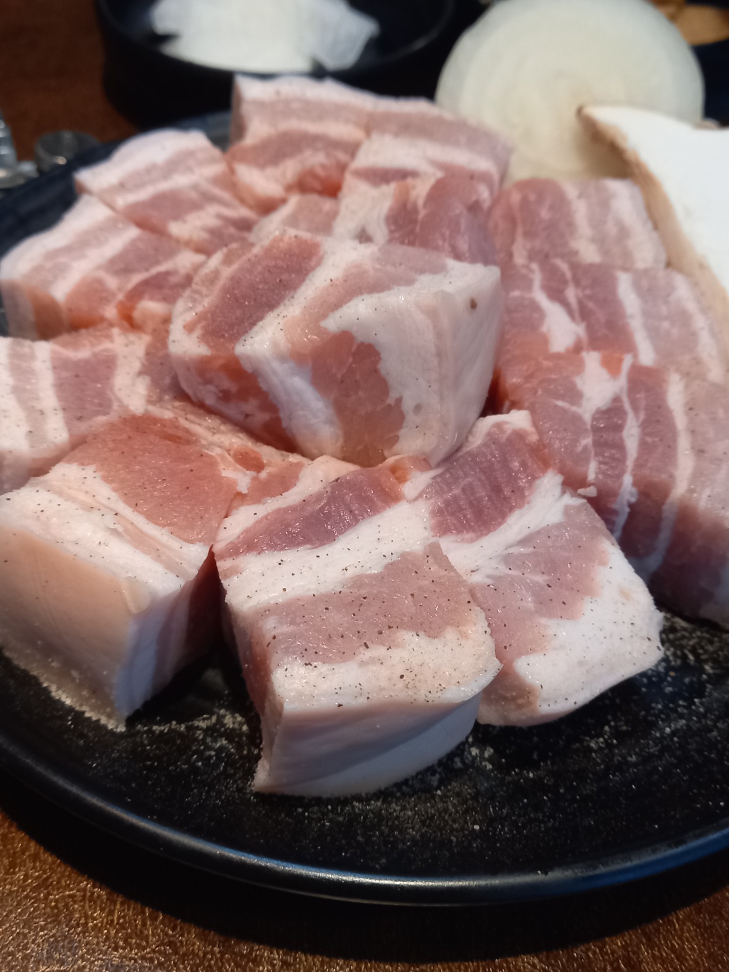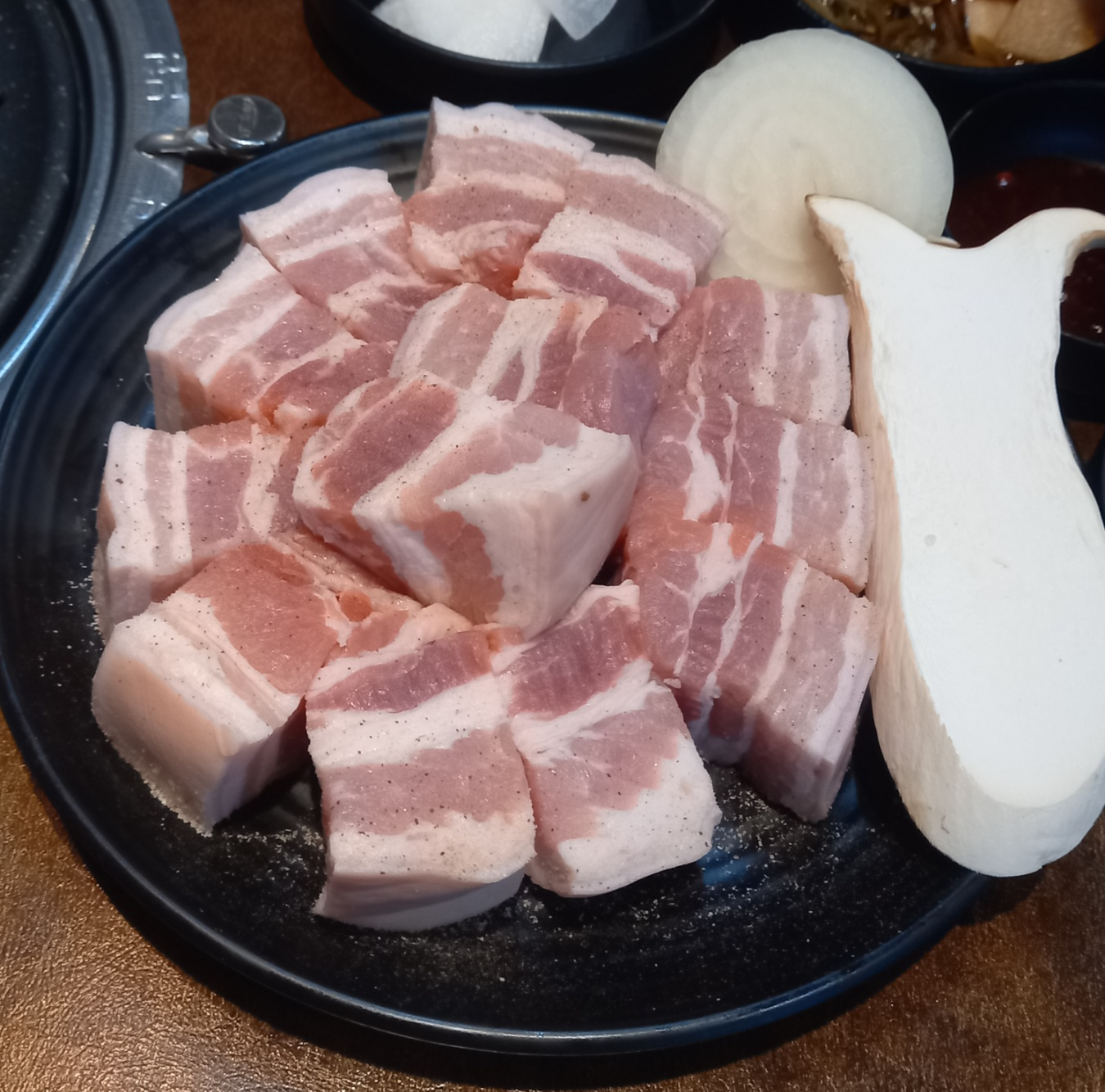 메뉴판에 없는 시그니처 메뉴가 있어서 깍뚝삼겹한판600g을 주문하였습니다.