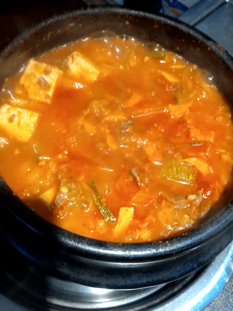 여러 재료들이 들어가서 맛이 다채롭고 된장찌개의 구수한맛까지 더해져 맛이 없을 수 없습니다.