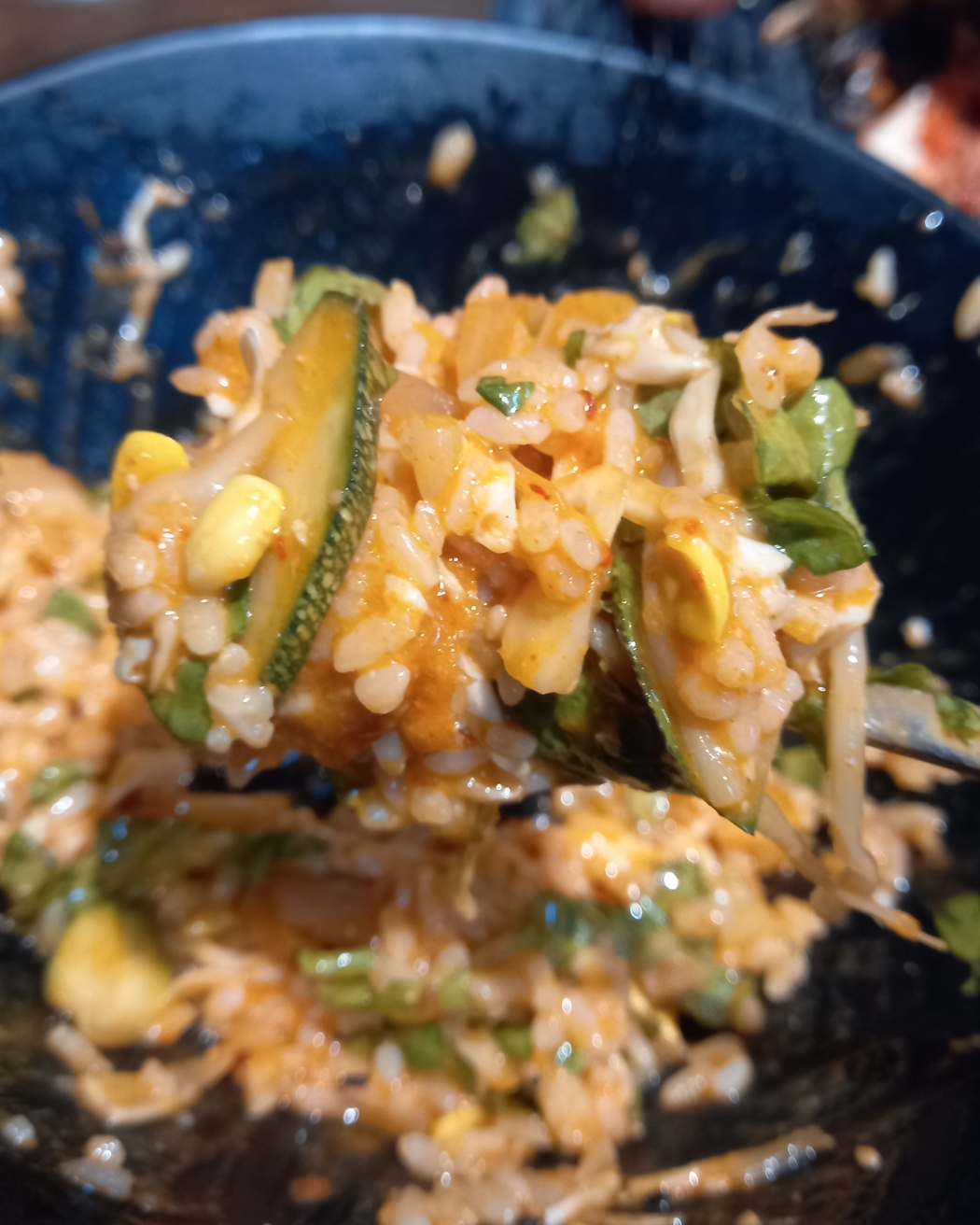 비빔밥에 된장찌개를 넣어서 비벼줍니다.