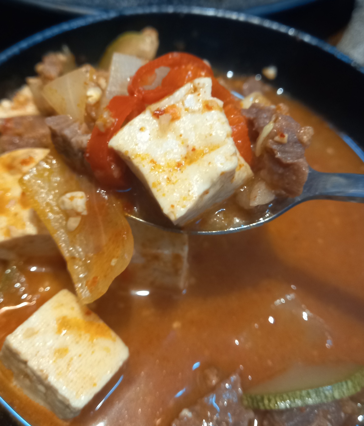 고기를 먹다가 주문한 소고기된장찌개가 나왔습니다.
